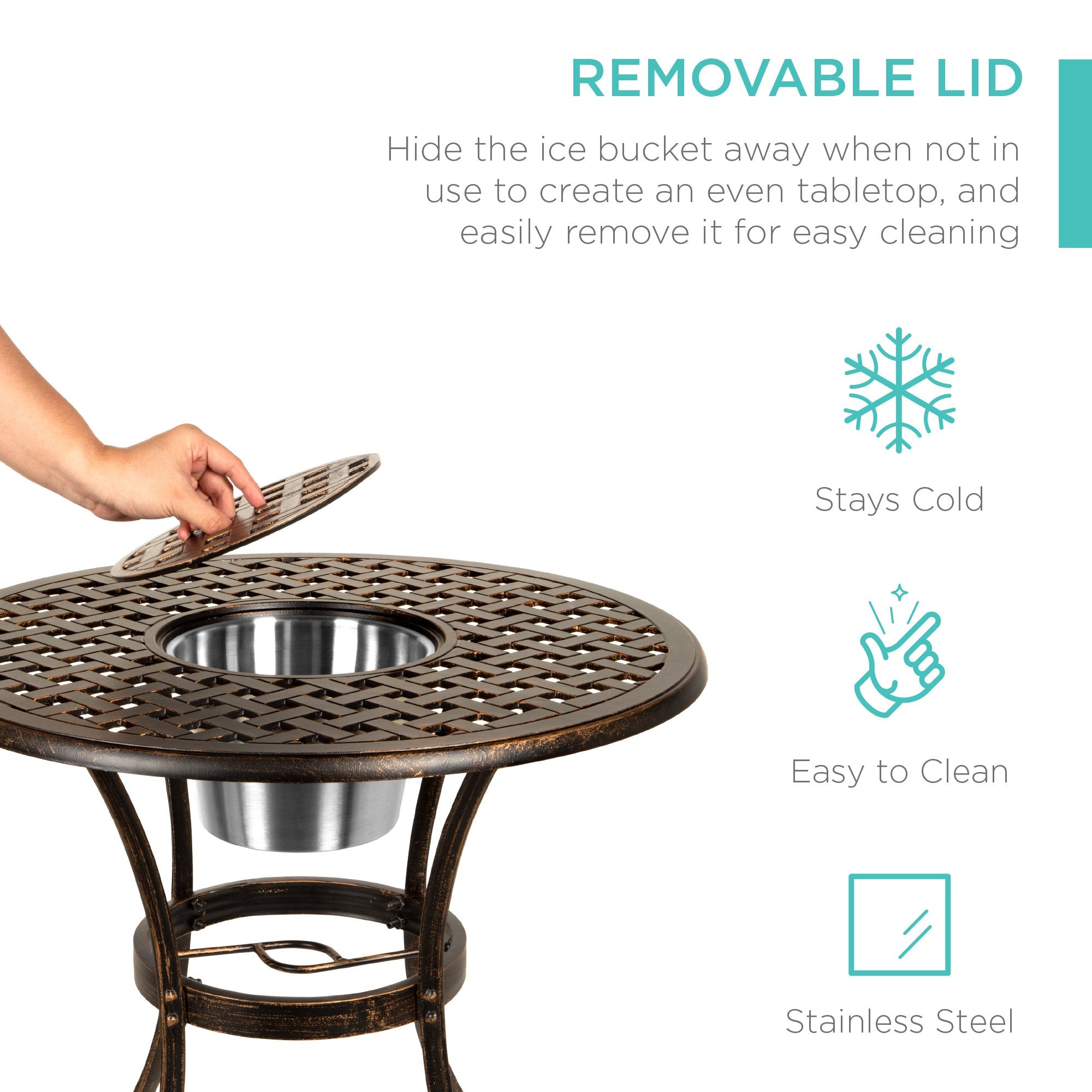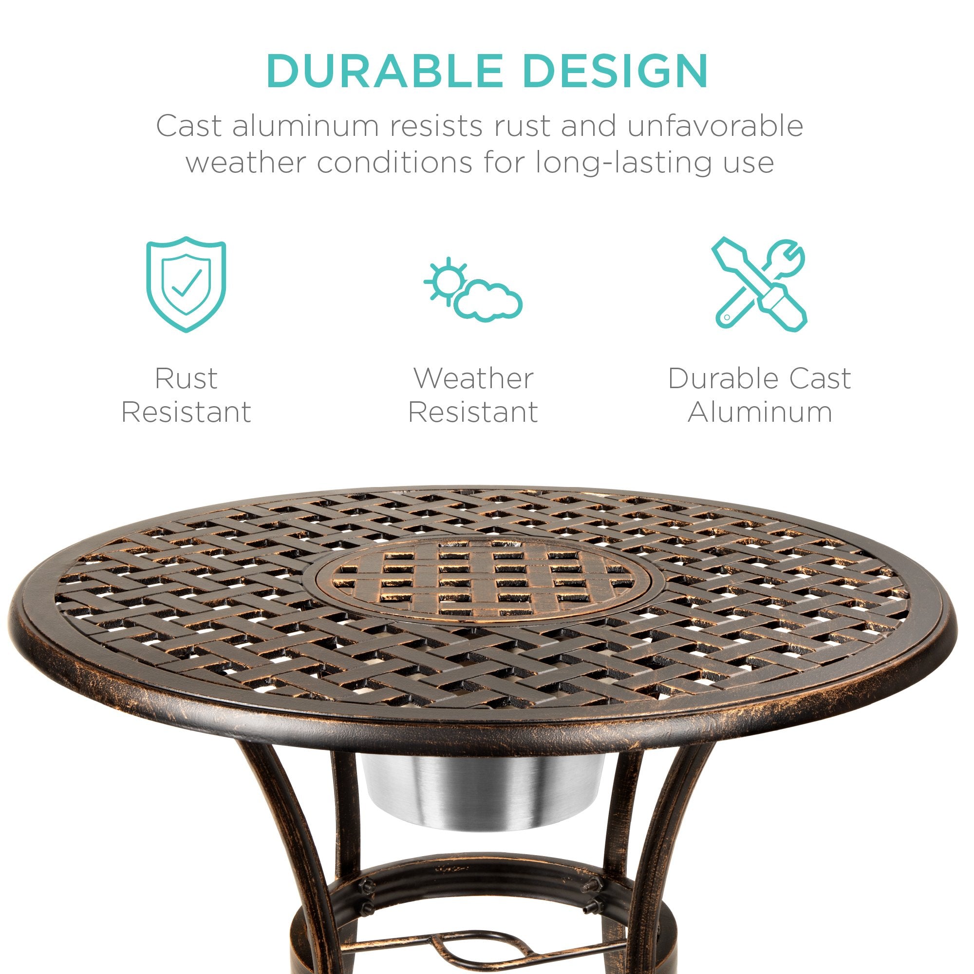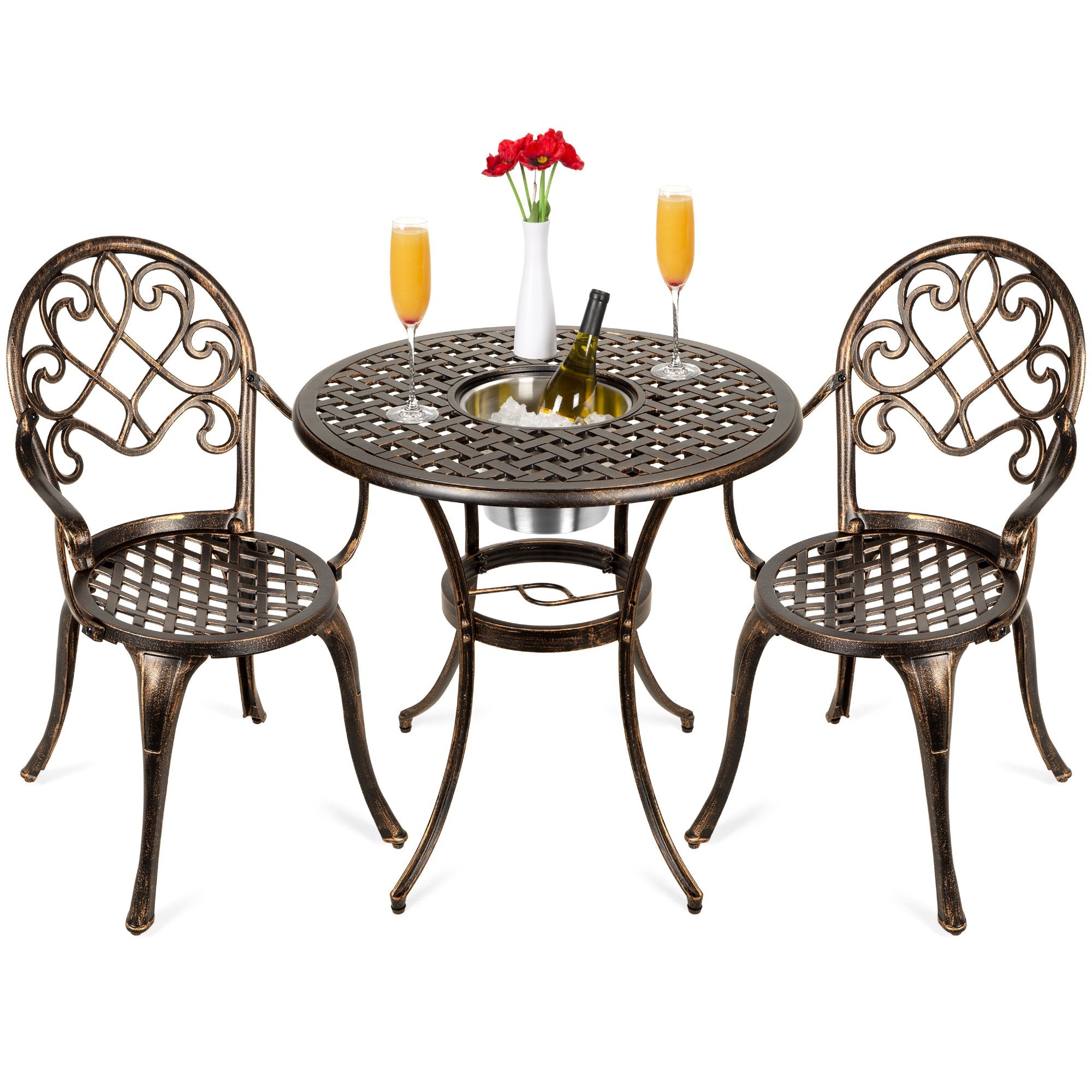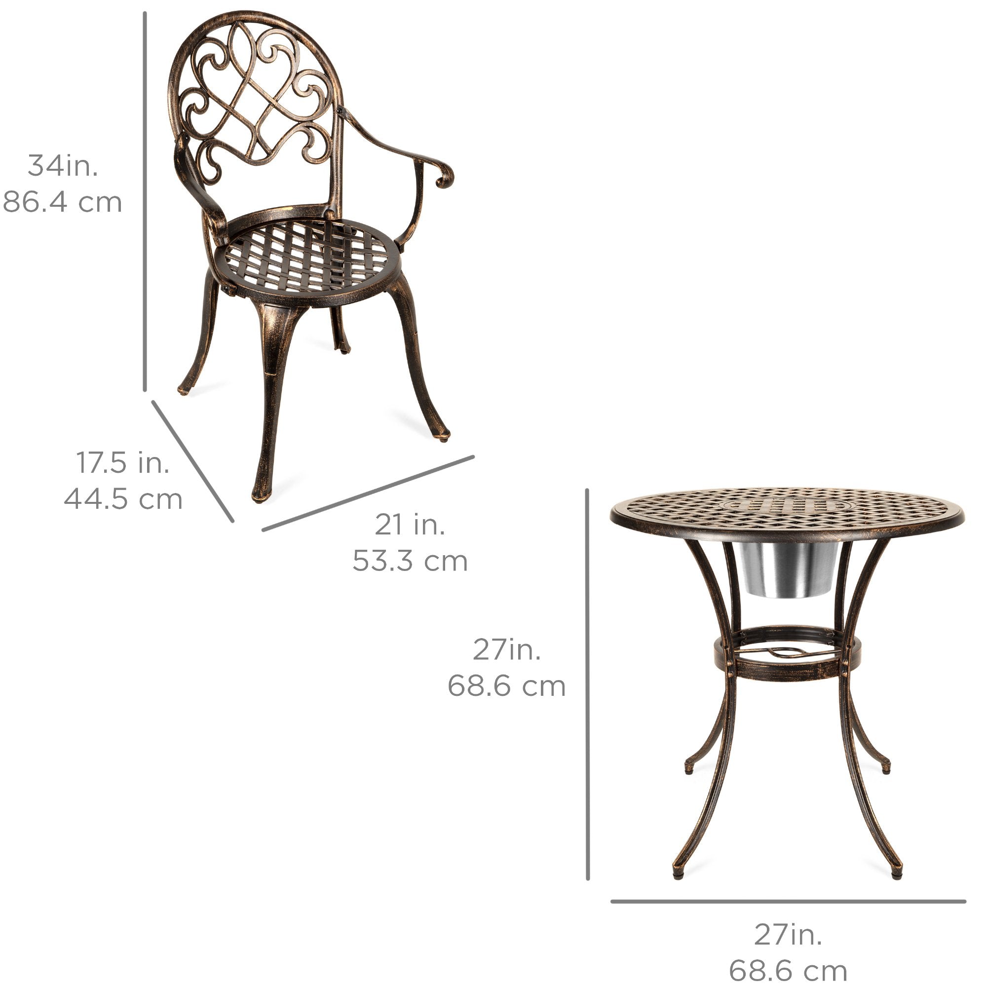 Cast Aluminum Patio Bistro Set w/ Ice Bucket, Chairs, Copper Finish