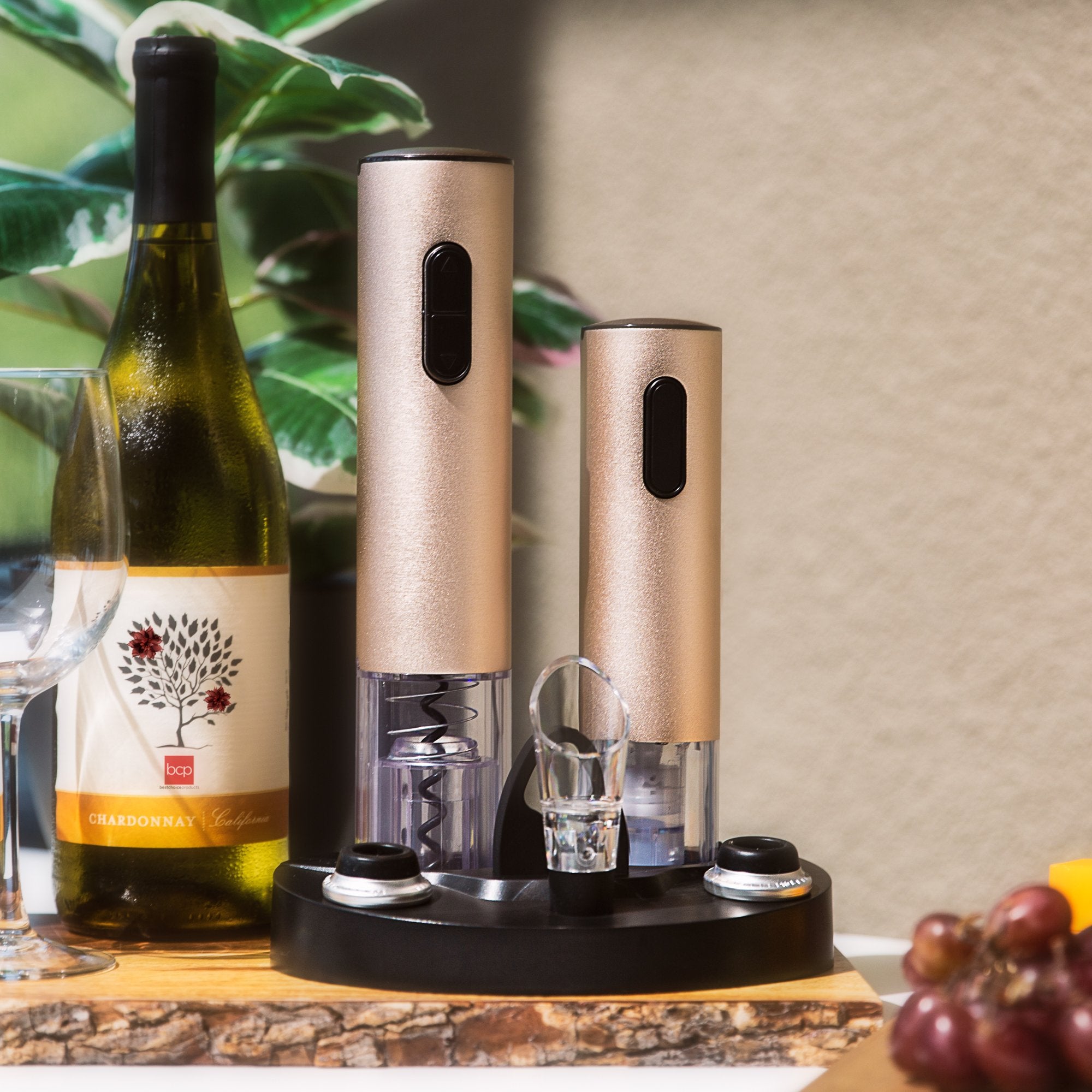Electric Stainless Steel Wine Opener Set w/ Aerator, Foil Cutter, Charger