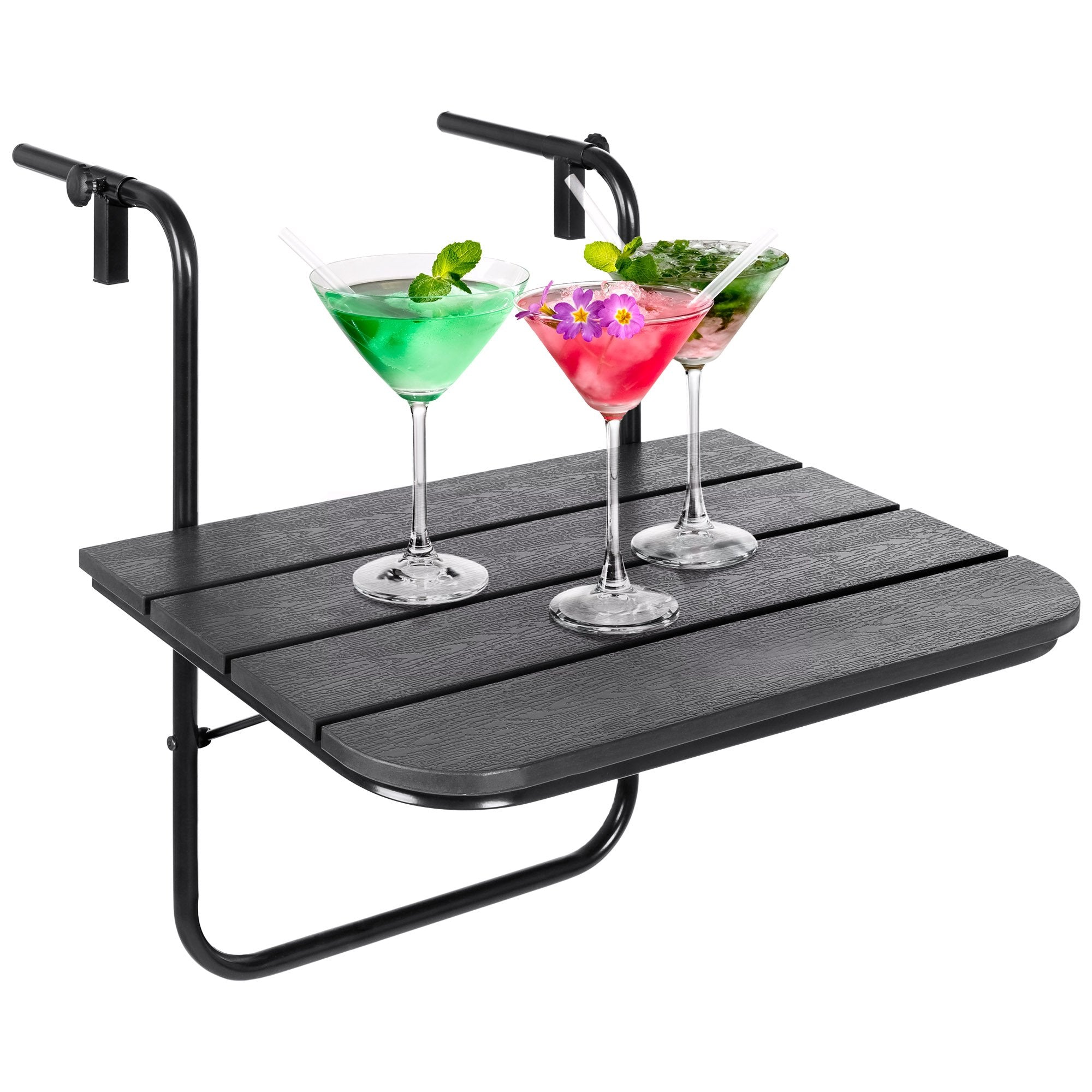 Foldable Hanging Balcony Railing Table w/ Compact Metal Frame - Black