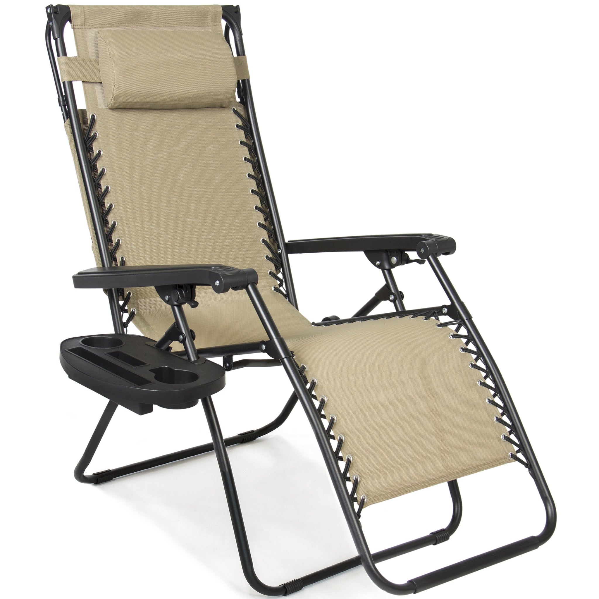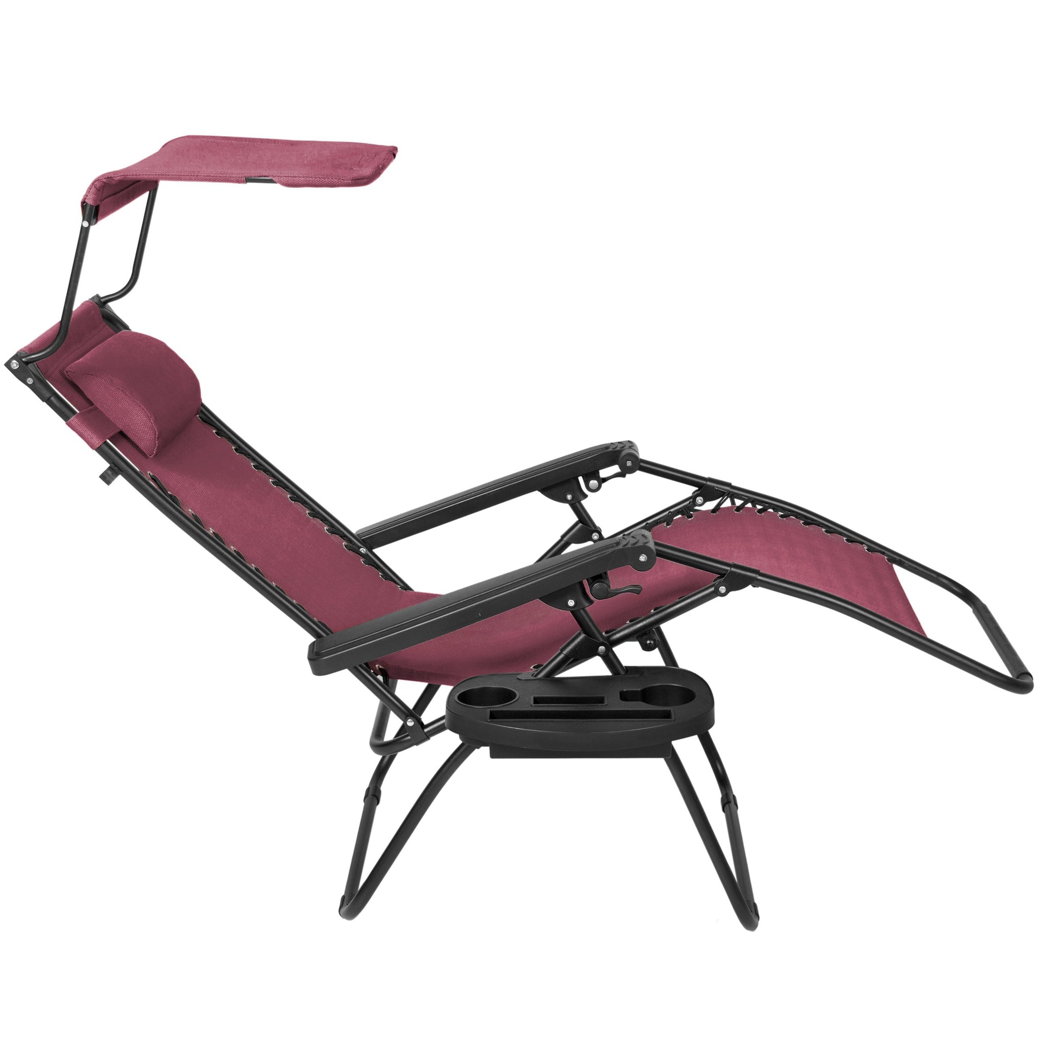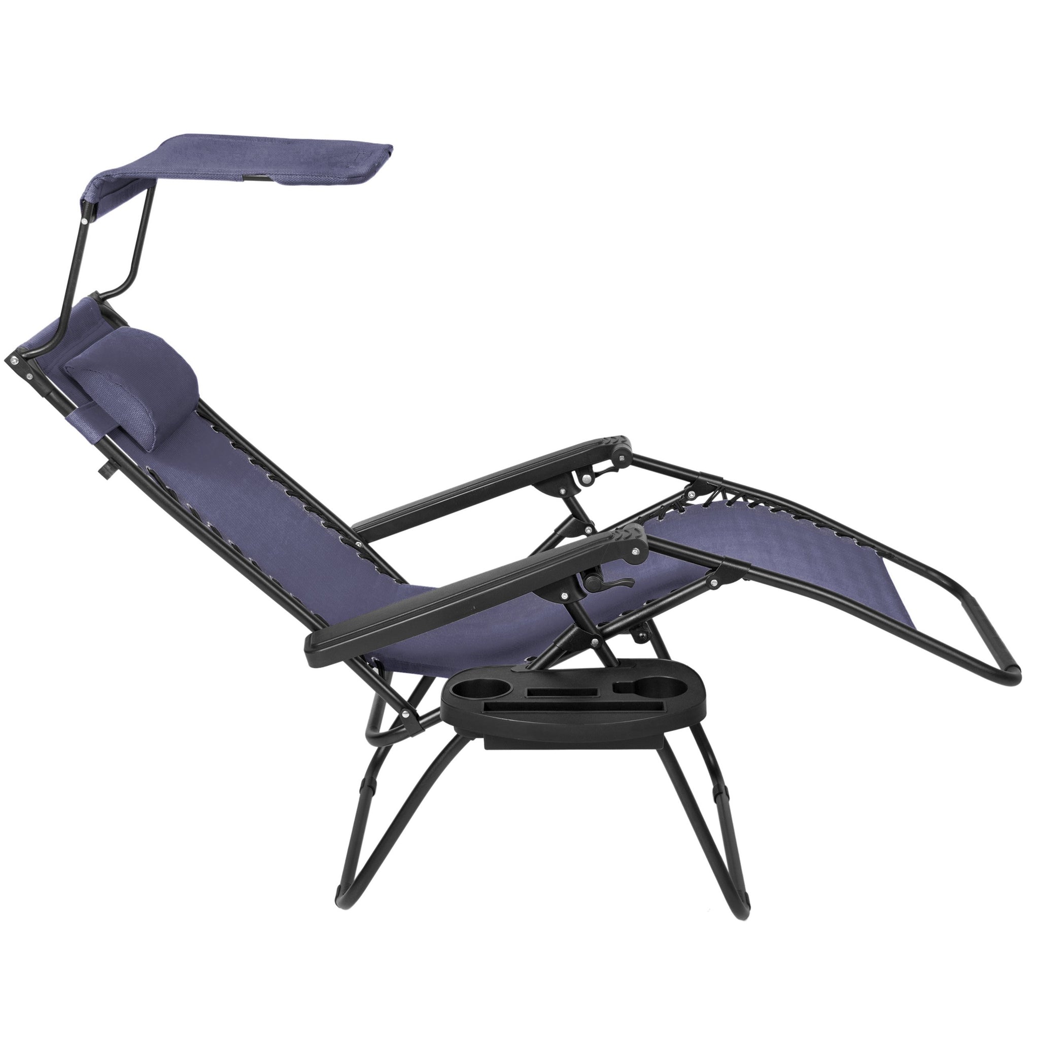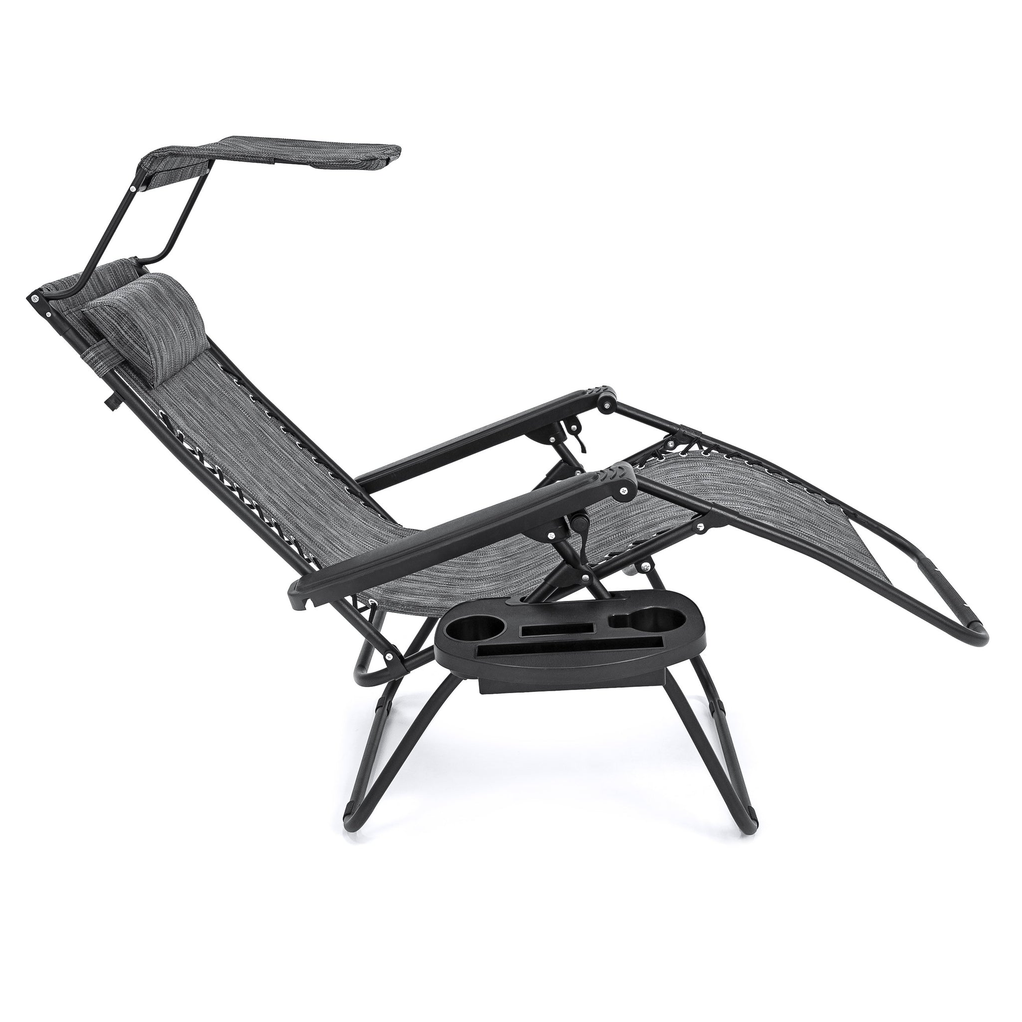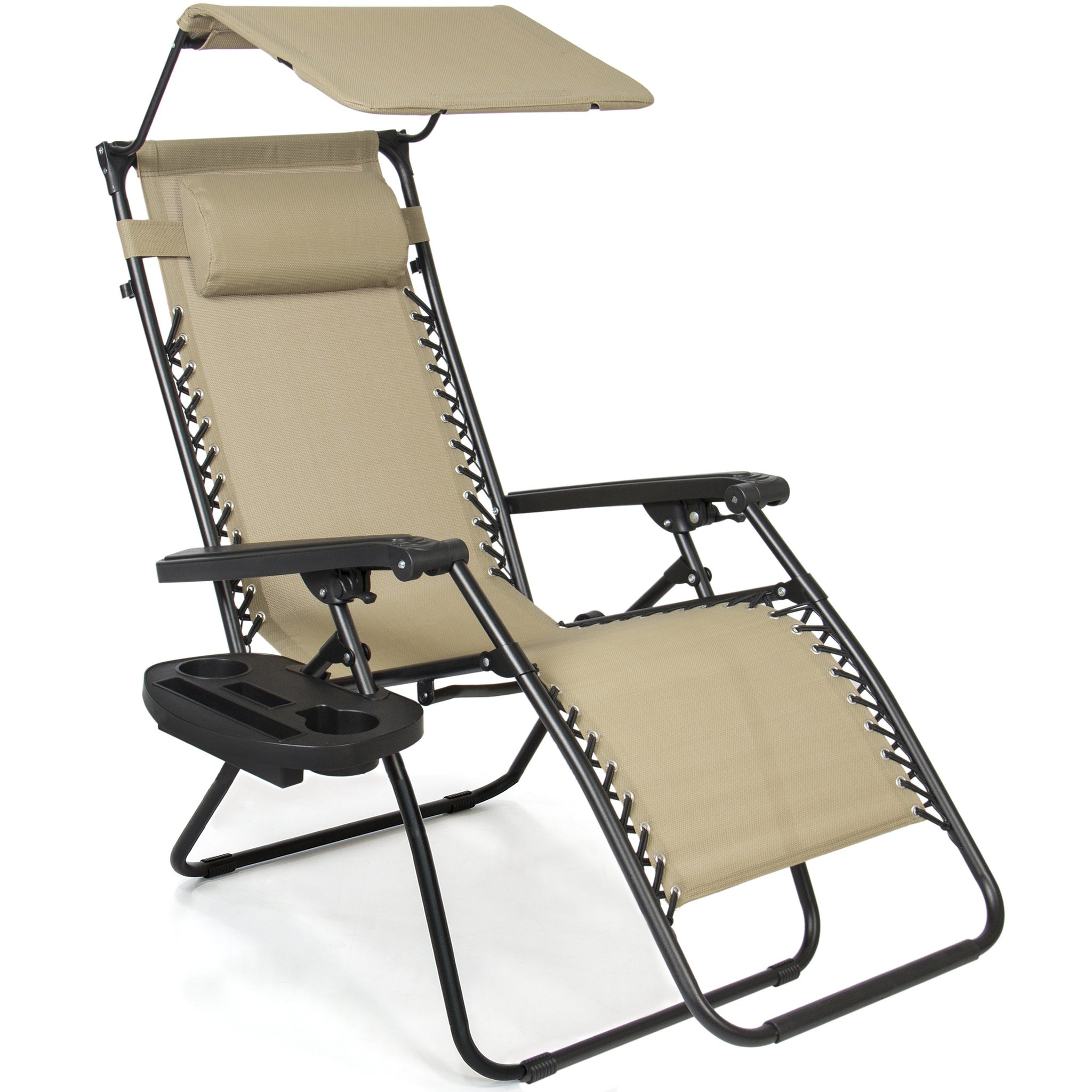 Folding Zero Gravity Recliner Lounge Chair w/ Canopy, Cup Holder