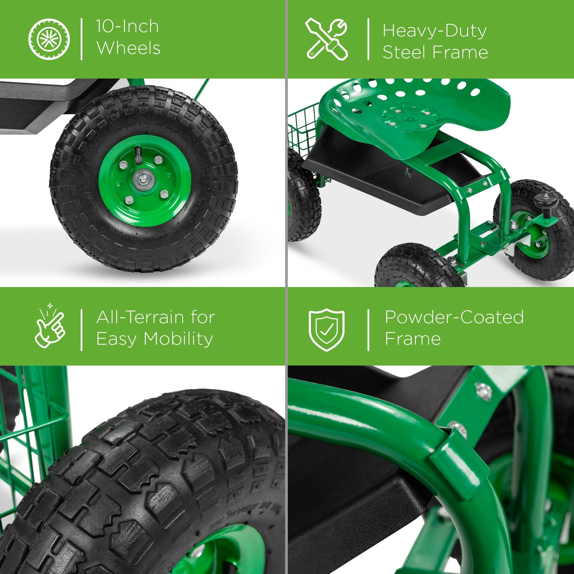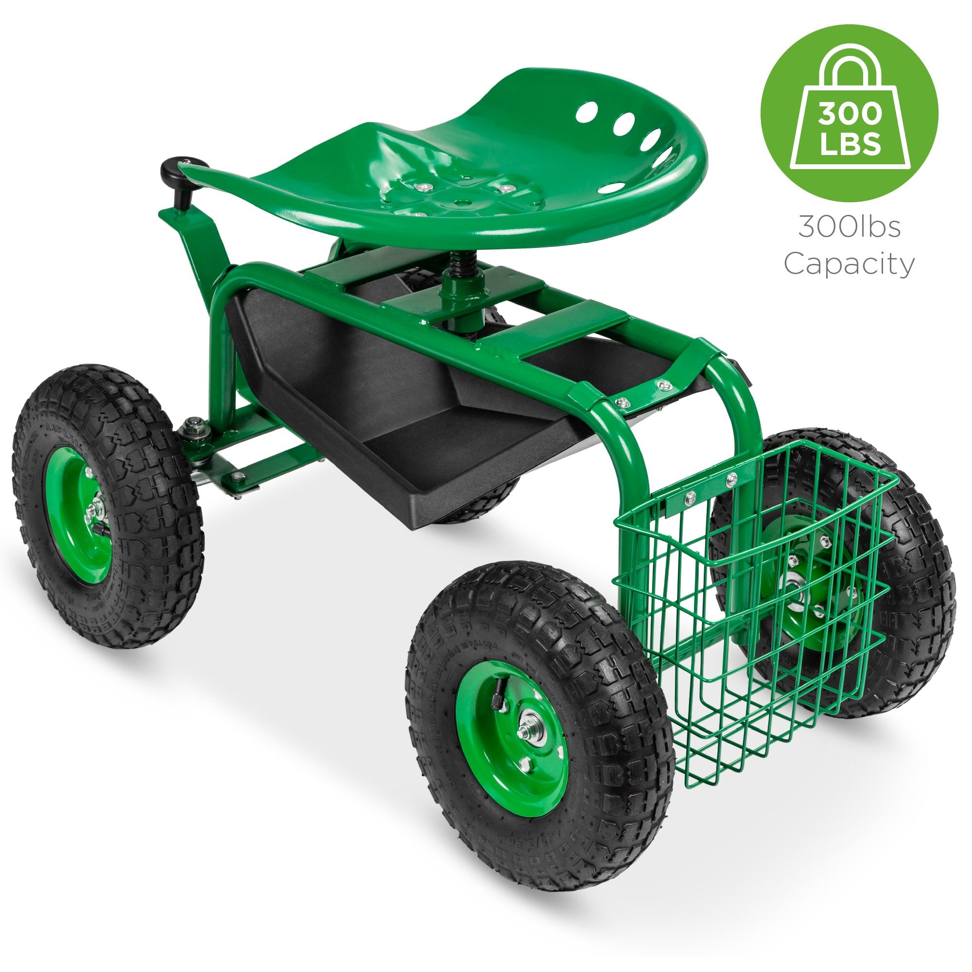 4-Wheel Mobile Rolling Garden Work Seat w/ Tool Tray and Basket