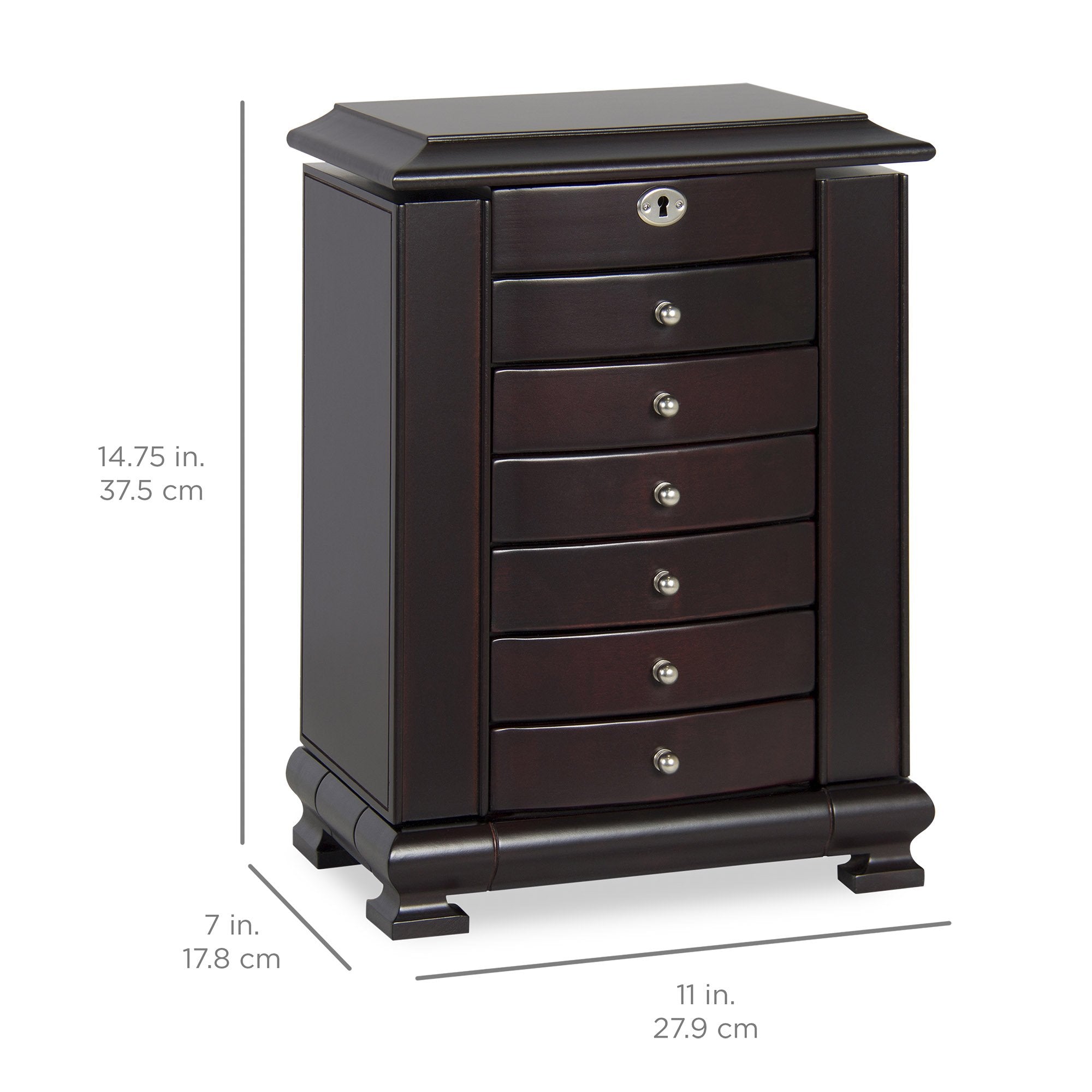 • STYLISH: Contemporary design and espresso wood finish of this jewelry box will offer an elegant style to your home decor