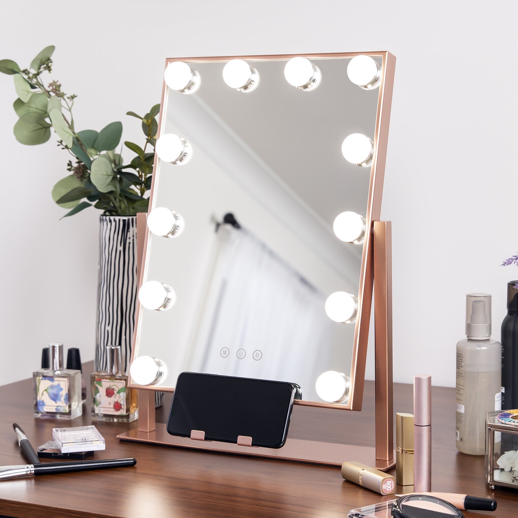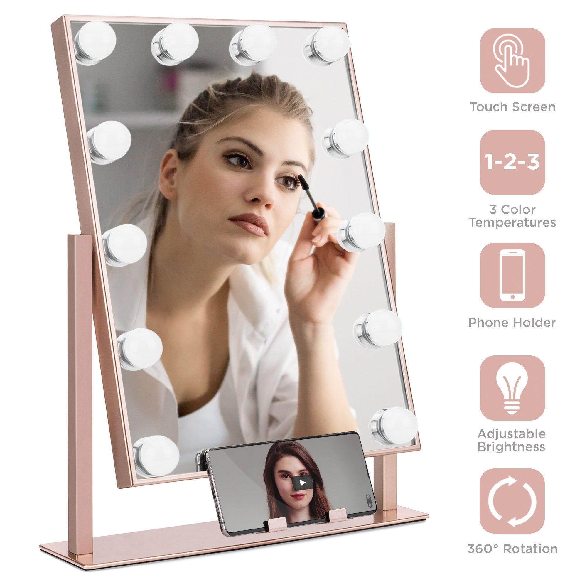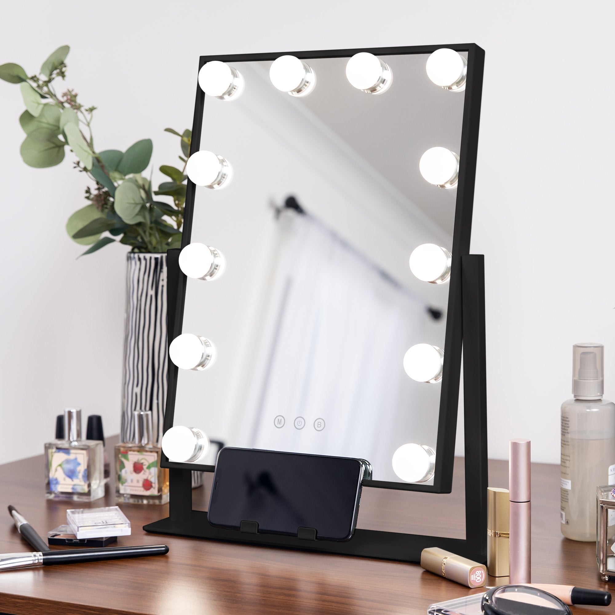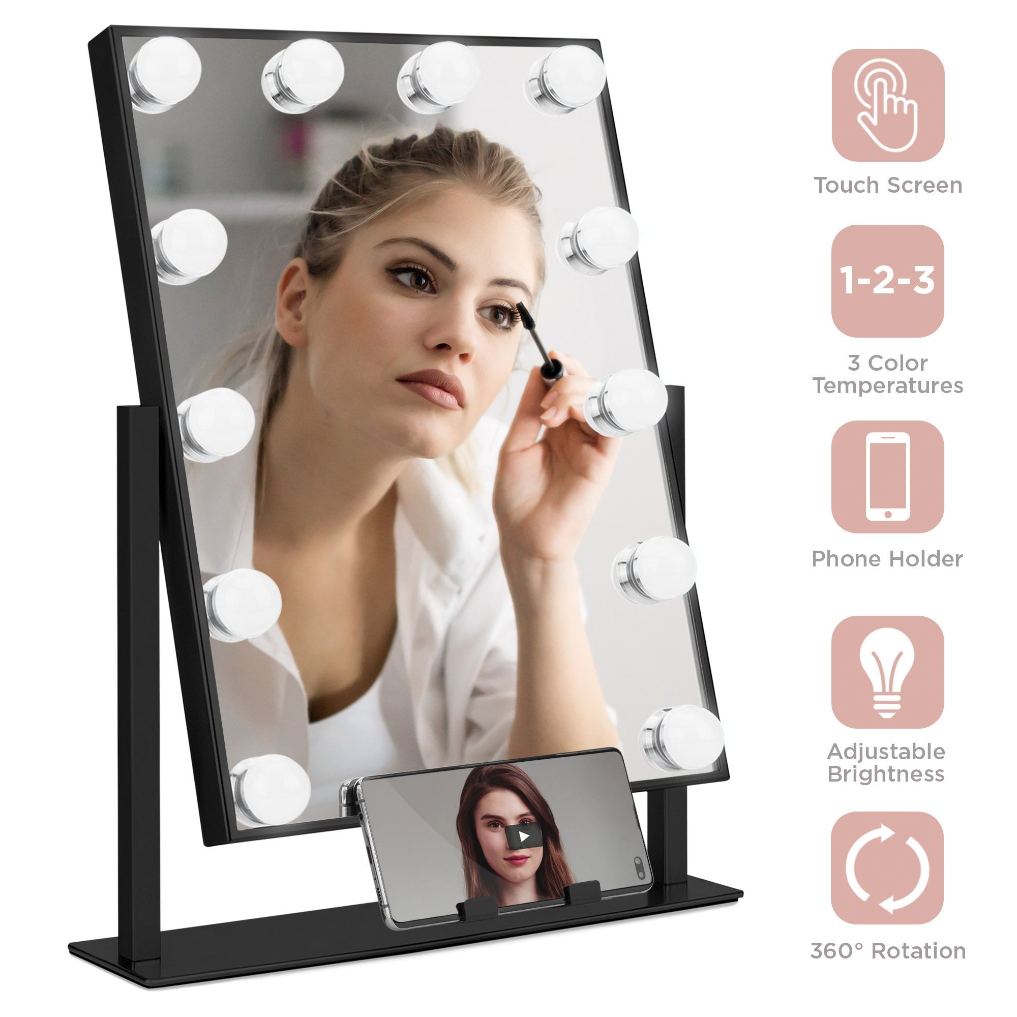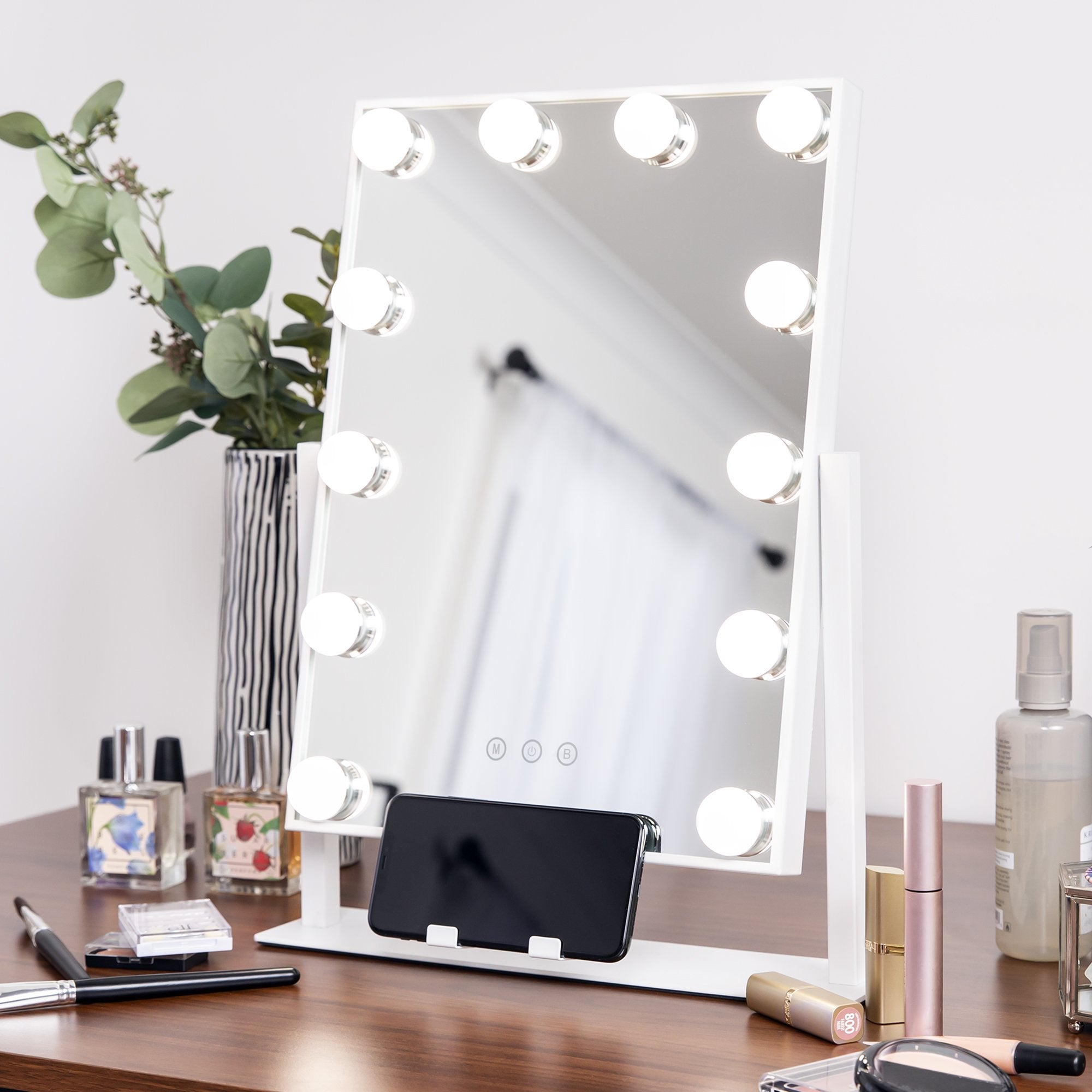 Hollywood Makeup Vanity Mirror w/ Smart Touch, Phone Holder, 12 LED Lights