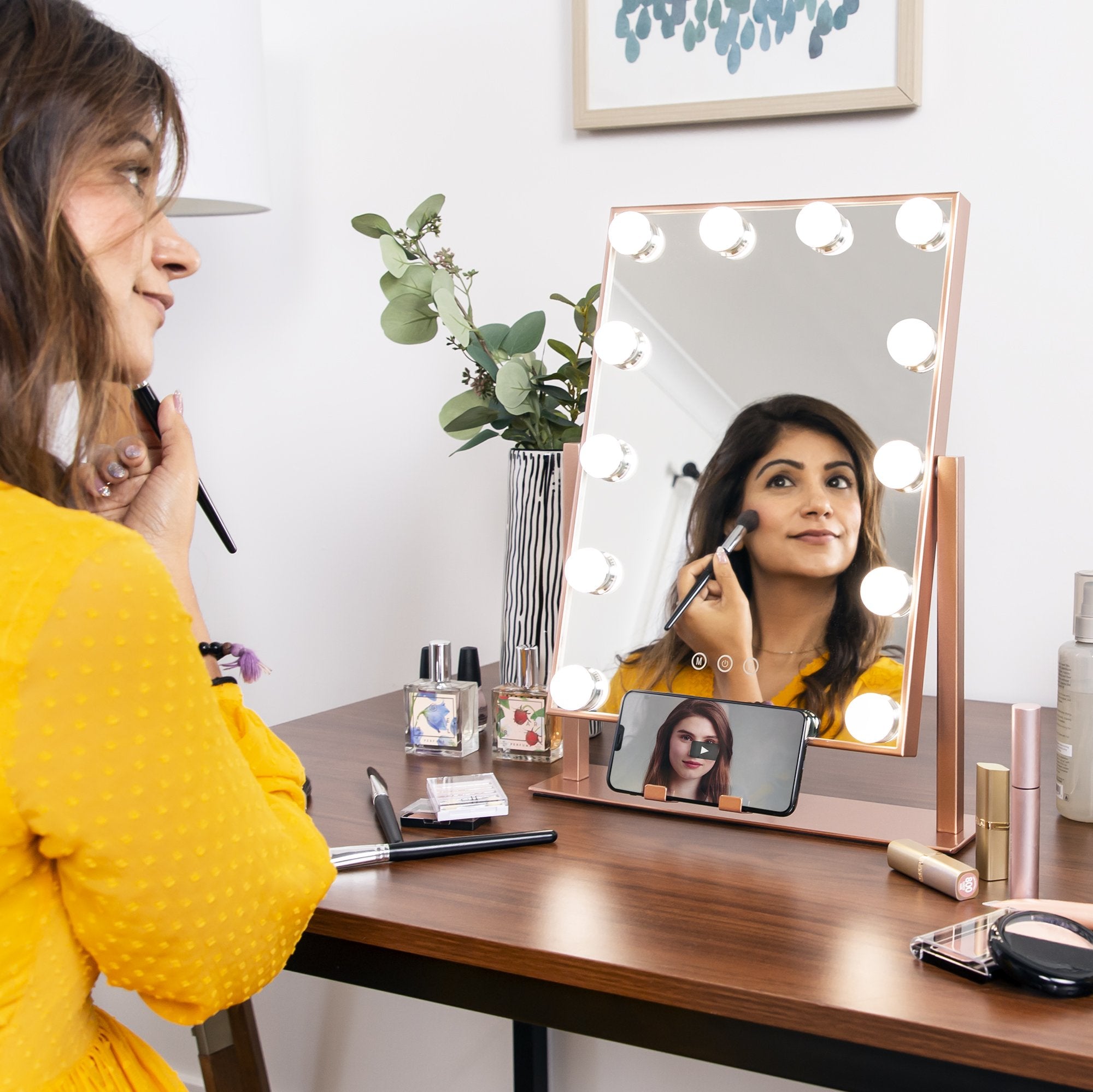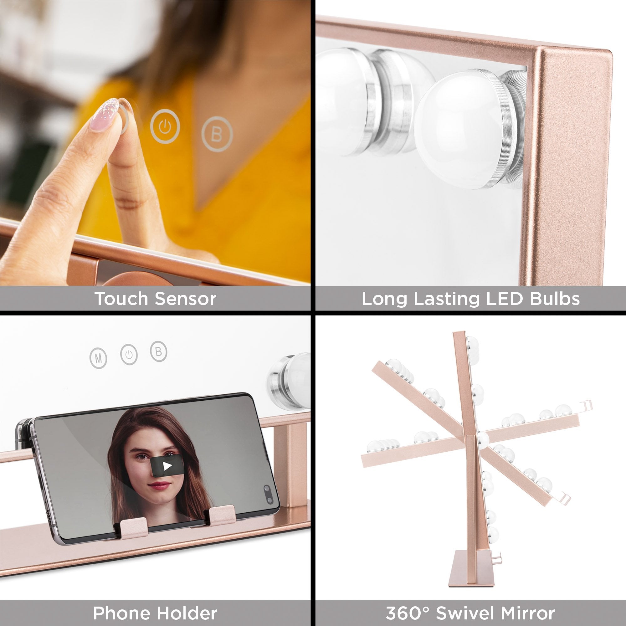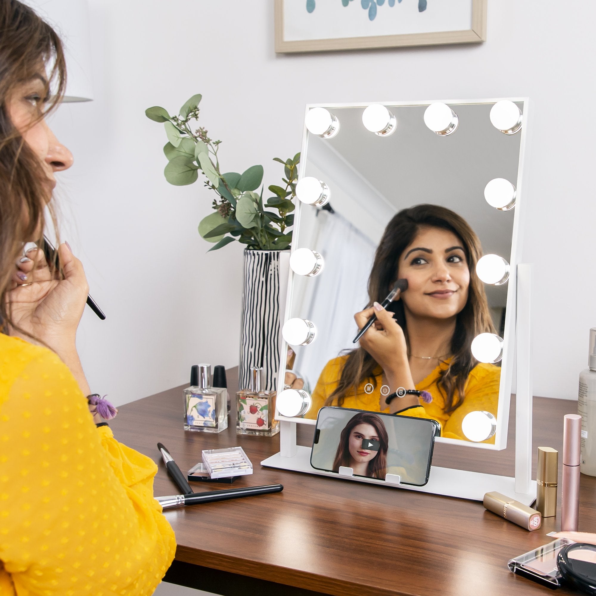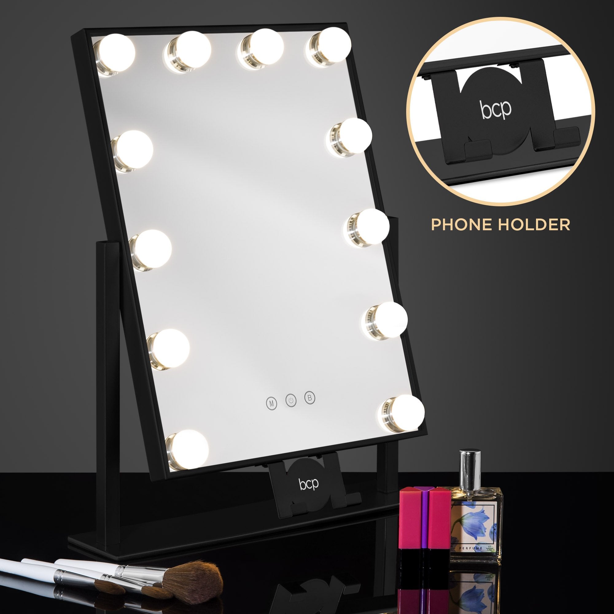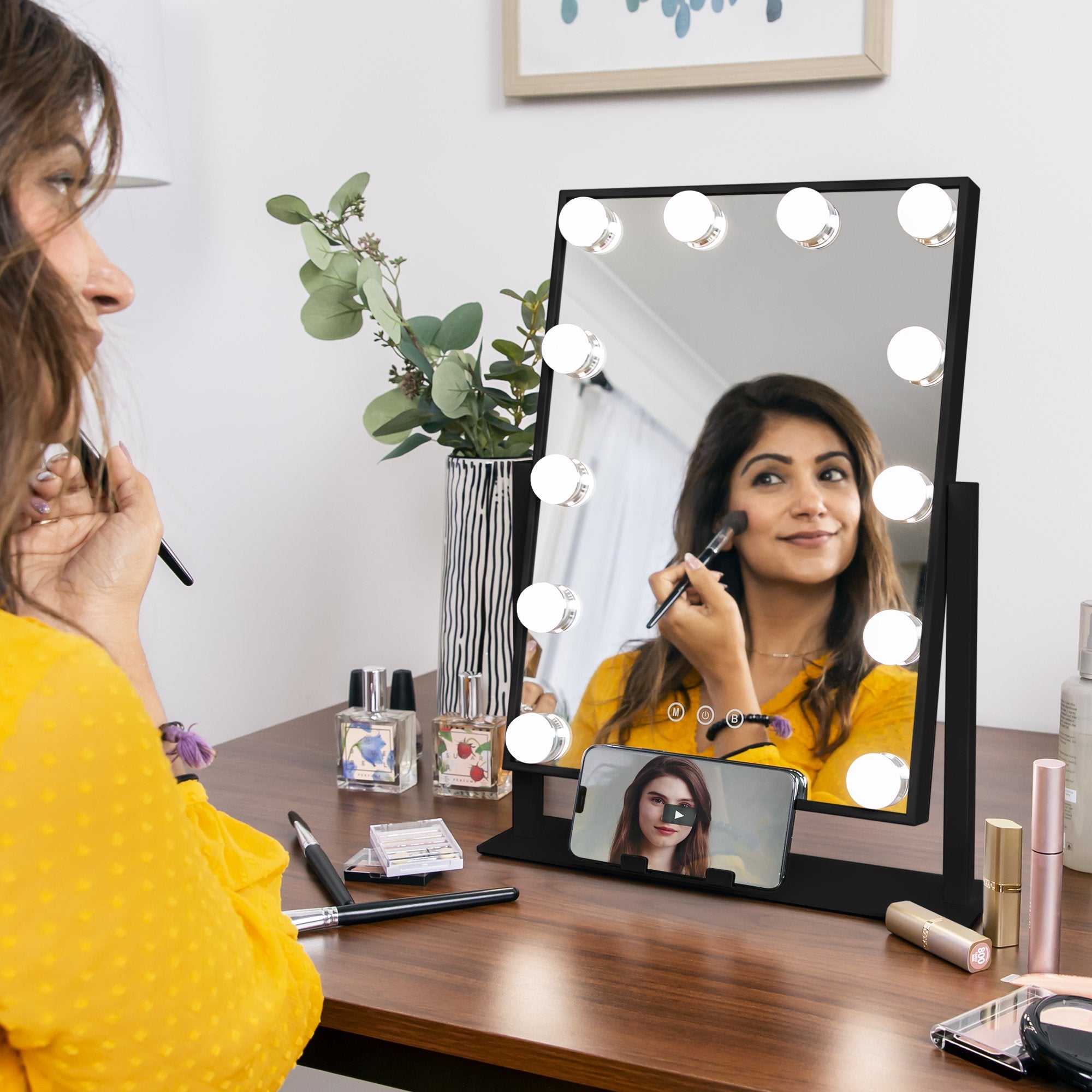 Hollywood Makeup Vanity Mirror w/ Smart Touch, Phone Holder, 12 LED Lights