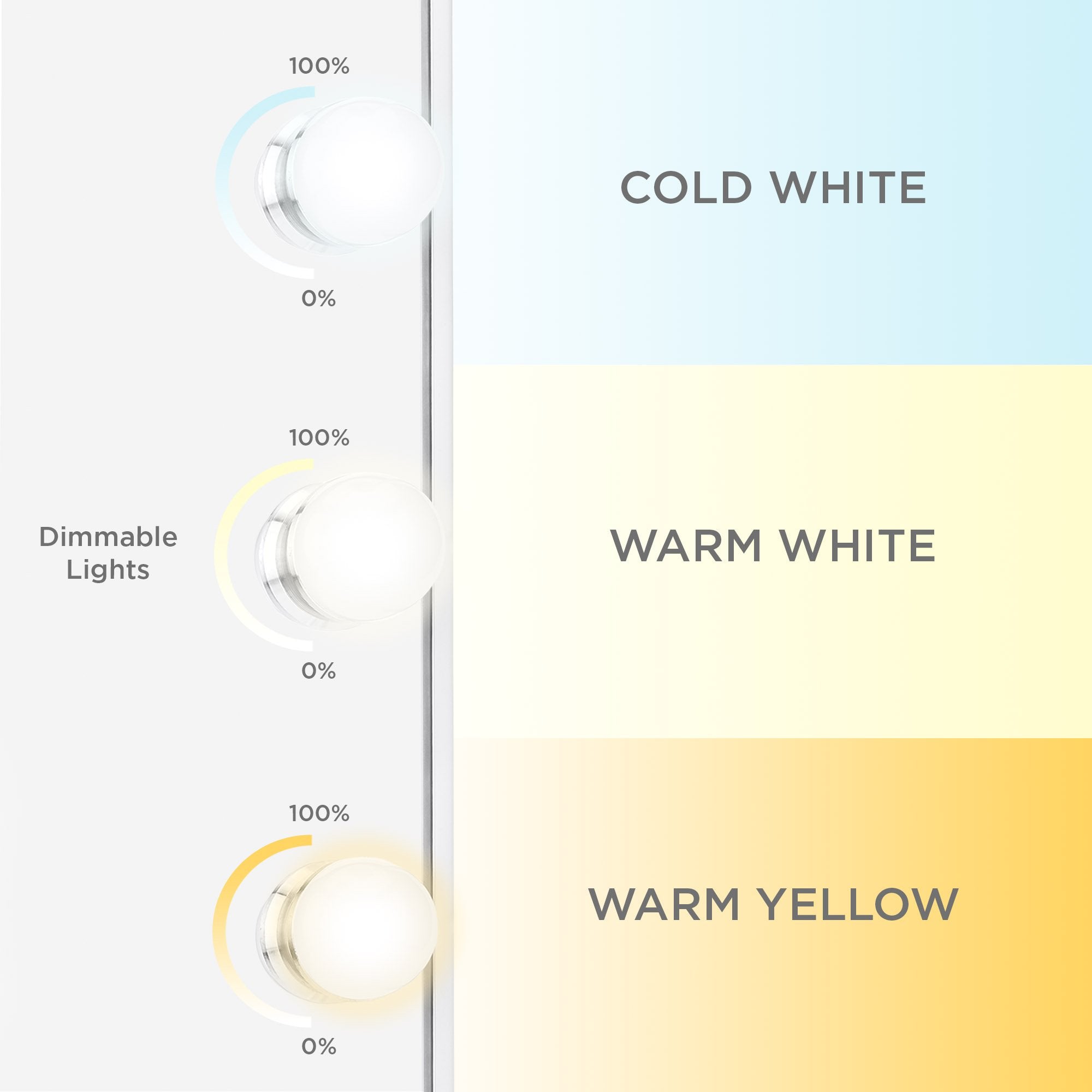• 12 ADJUSTABLE LED LIGHTS: Twelve LED light bulbs achieve the perfect balance of tone and soft lighting in adjustable brightness and three-color temperatures: cold white, warm white, and warm yellow.