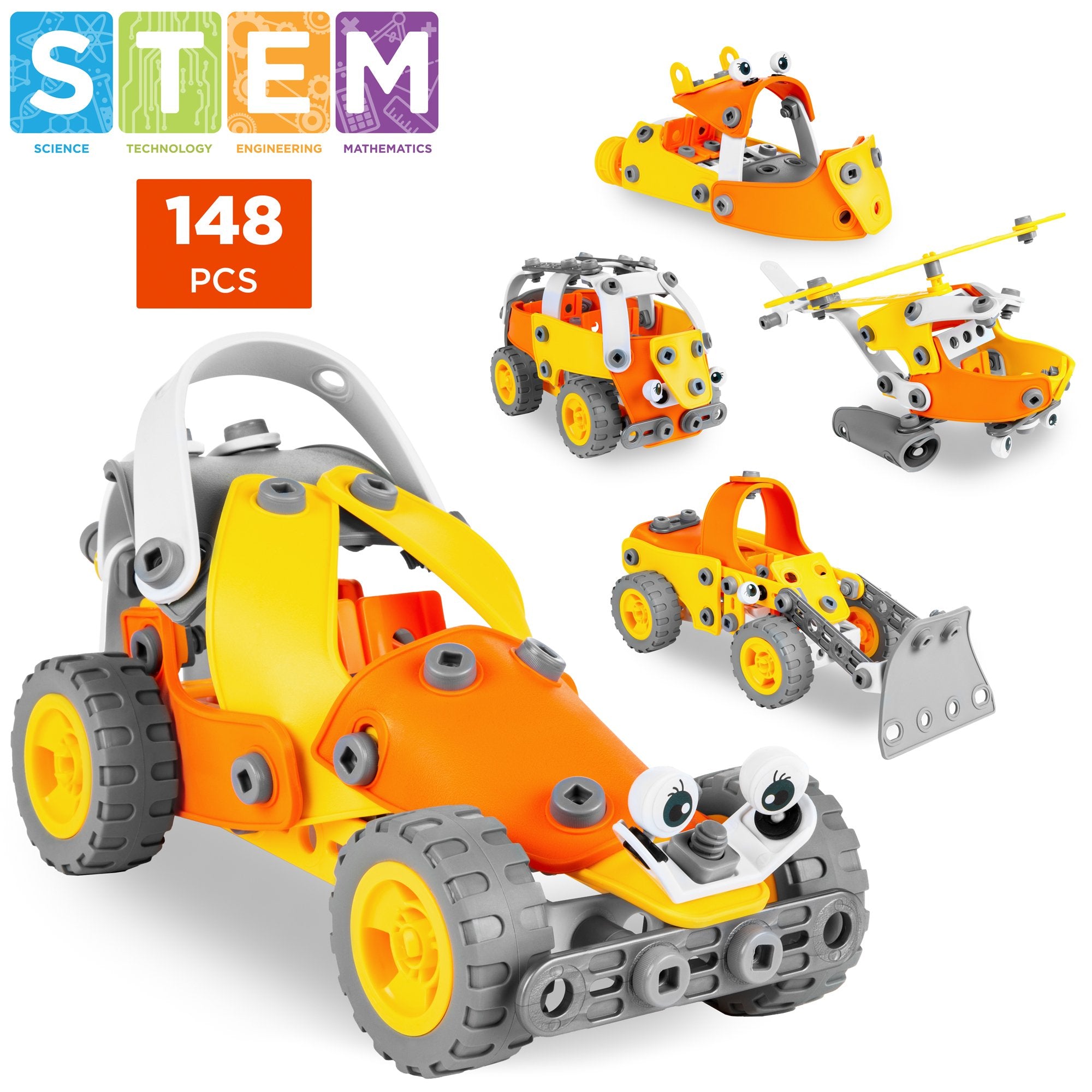 Kids 147-Piece 5-in-1 Educational STEM Building Toy Kit Vehicle Play Set