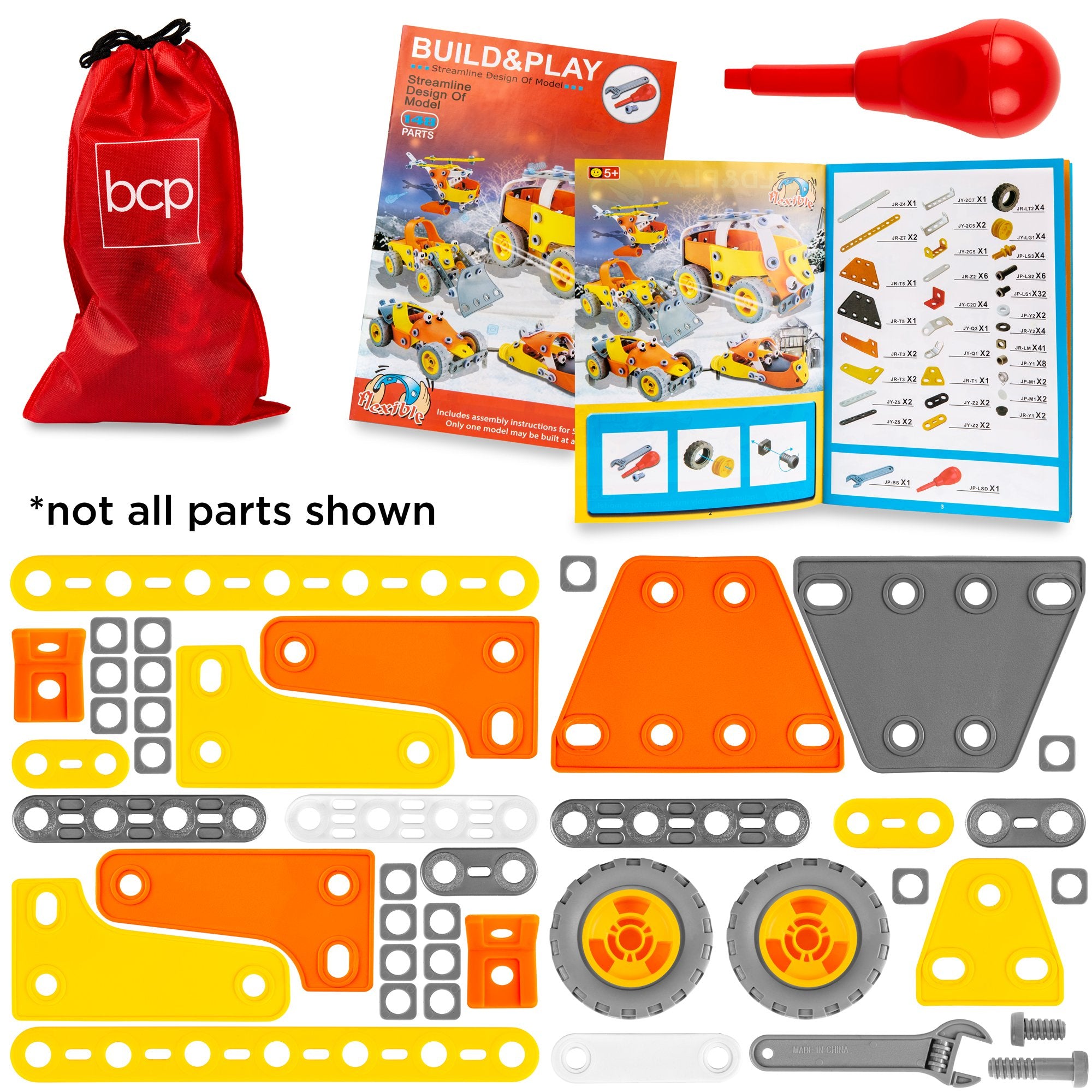 VARIOUS BUILDING OPTIONS: Included booklet helps children build 5 different toys; it will lead them through each step of building a race car, helicopter, boat, bulldozer, or truck. Kids can also challenge themselves by tossing the booklet aside to build their own design.