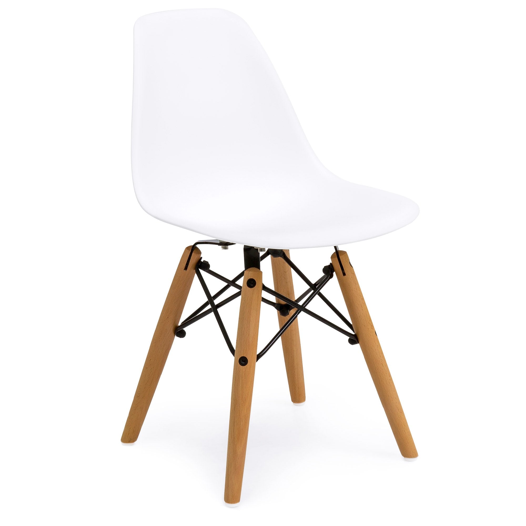 • DURABLE COMPOSITION: Made of durable plastic material, with wood legs and a sturdy wire metal base to last throughout the younger years