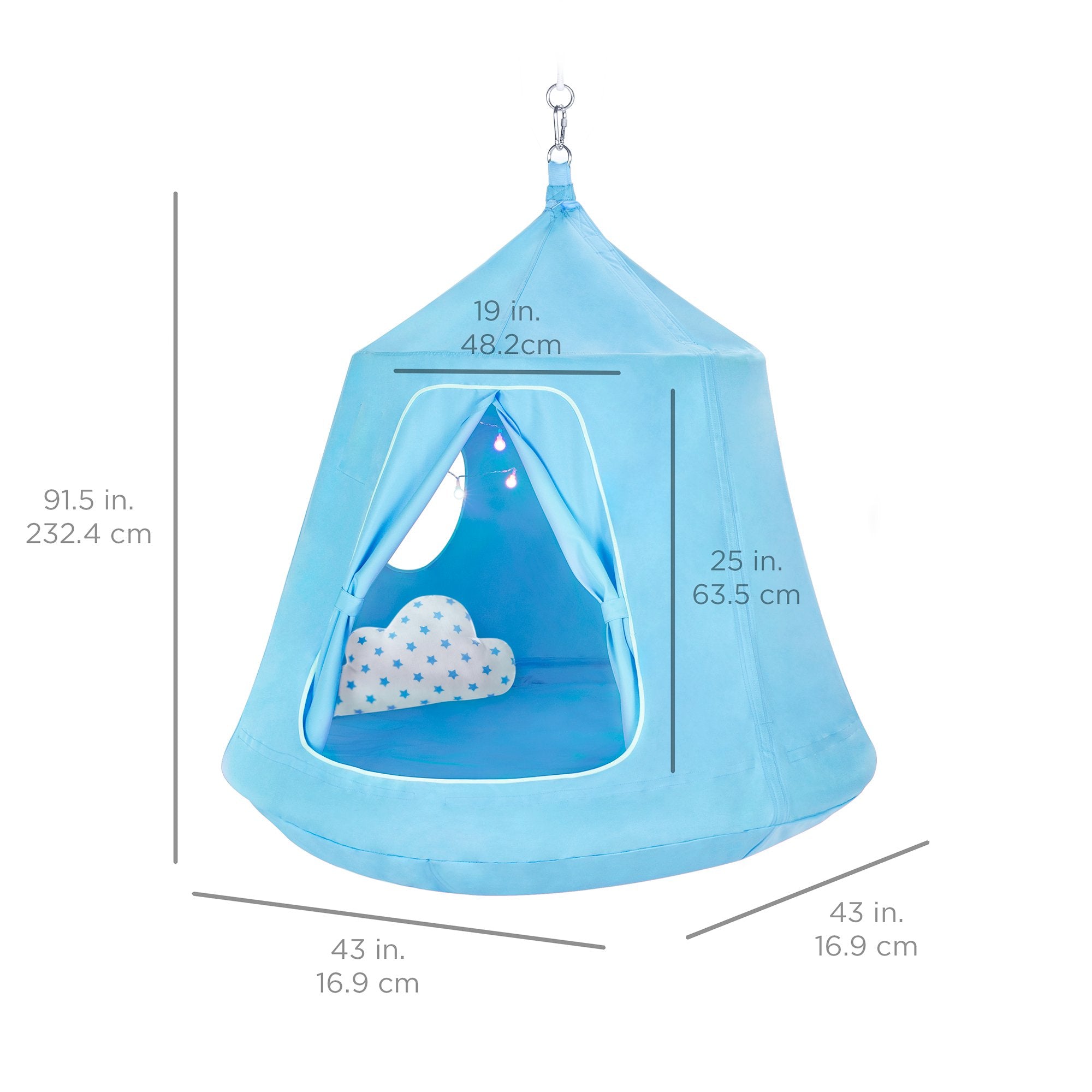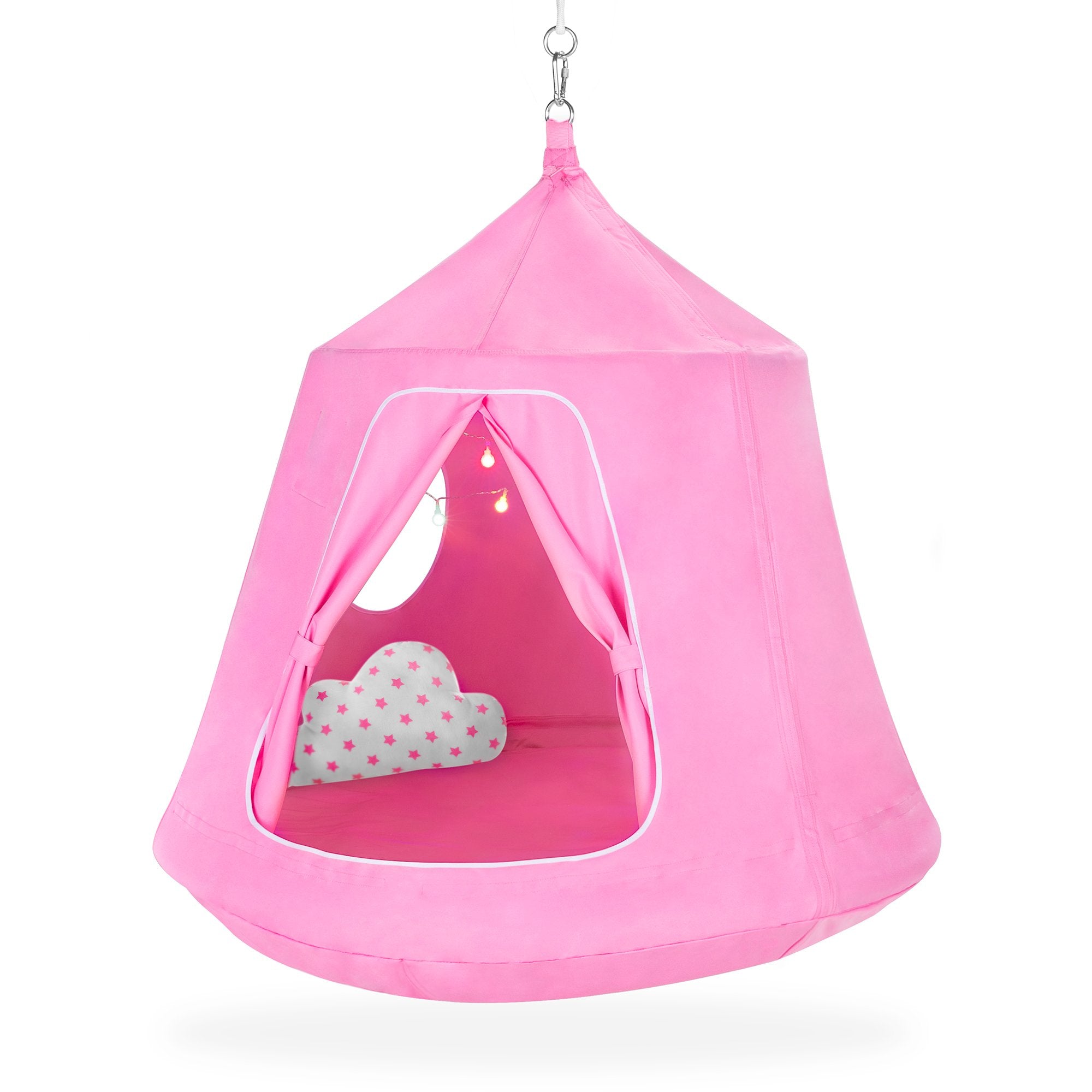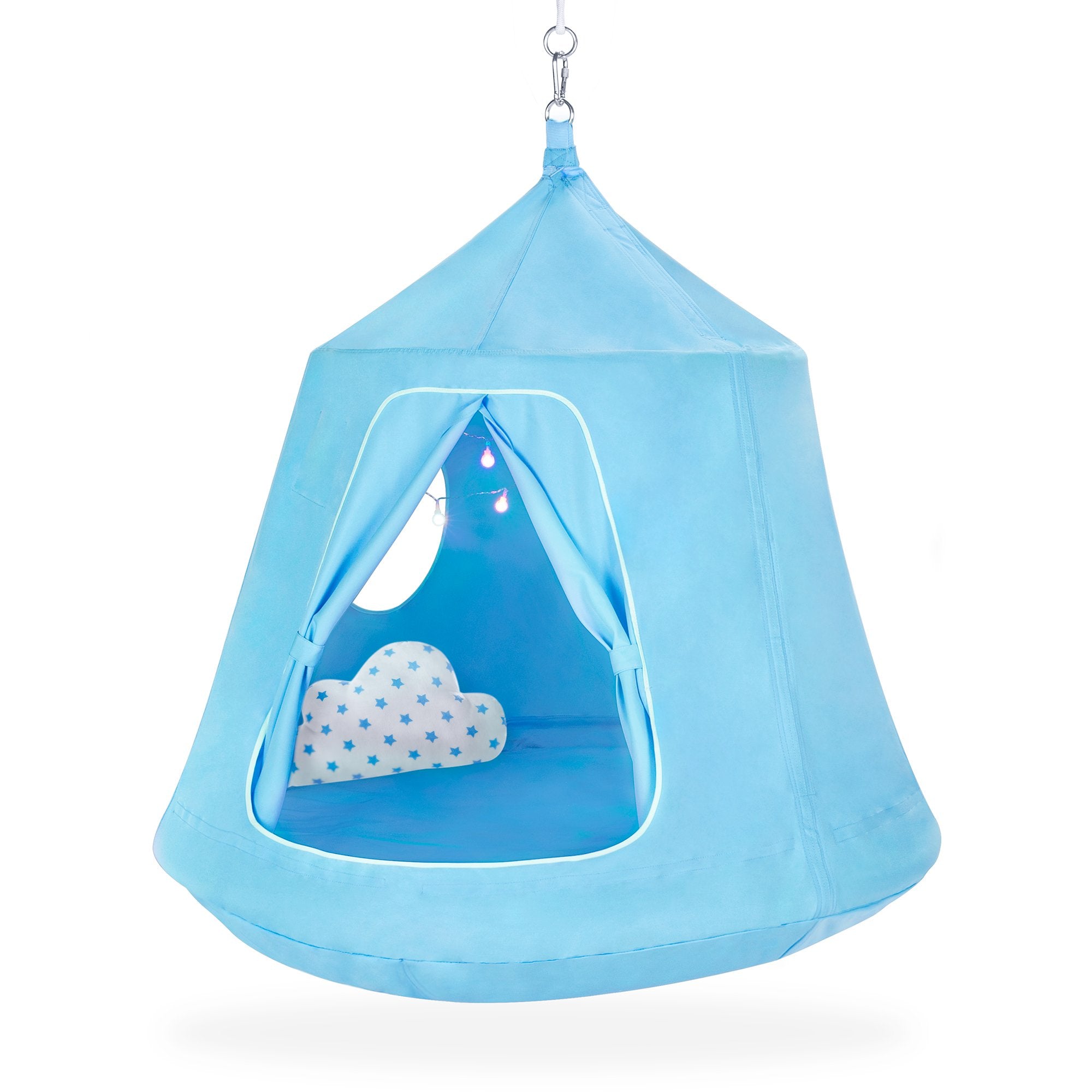 Kids Indoor & Outdoor Hammock Swing Tent Set w/ Ropes, LED String Lights