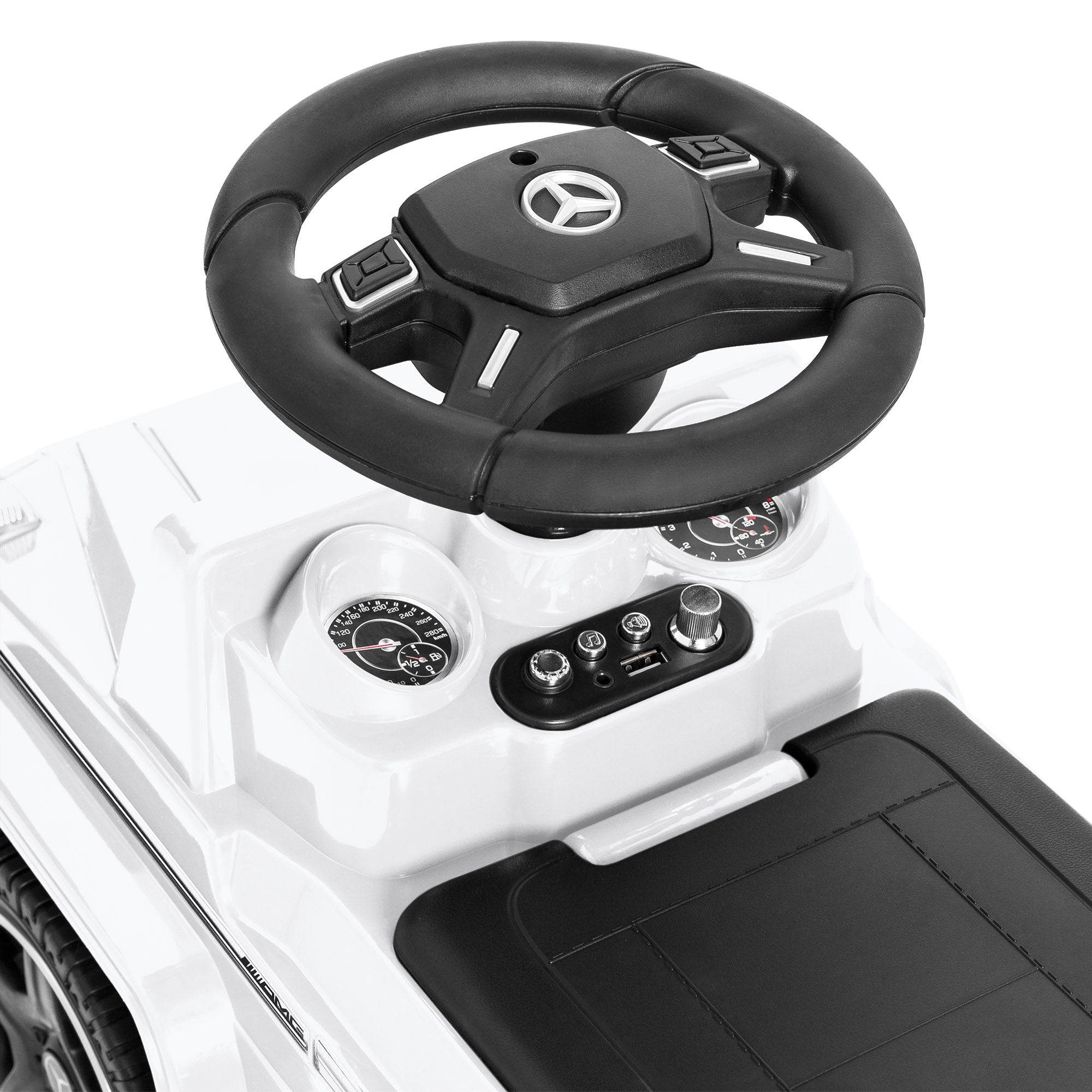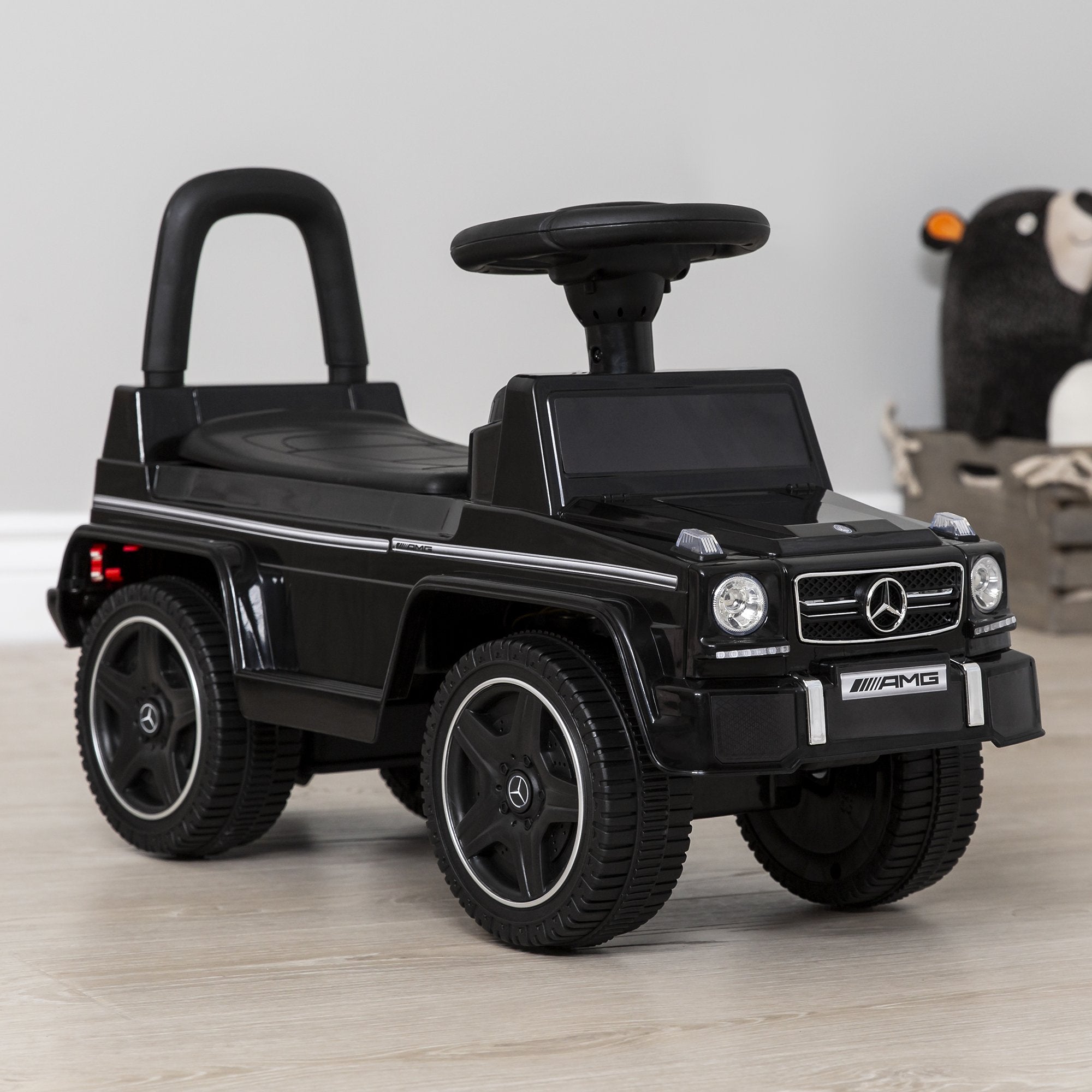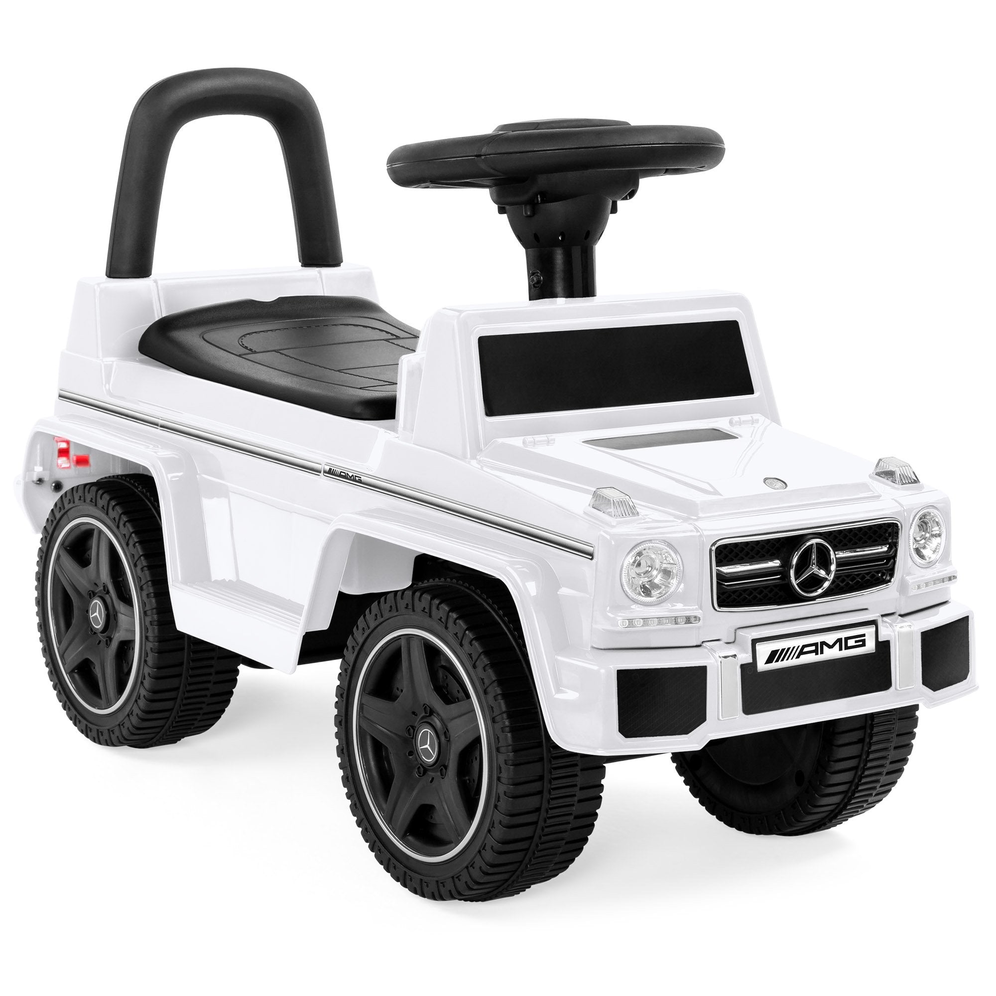RIDE-ON/WALKER COMBO: This stylish Mercedes lets toddlers ride themselves or use it as a push toy with a kid-sized push bar