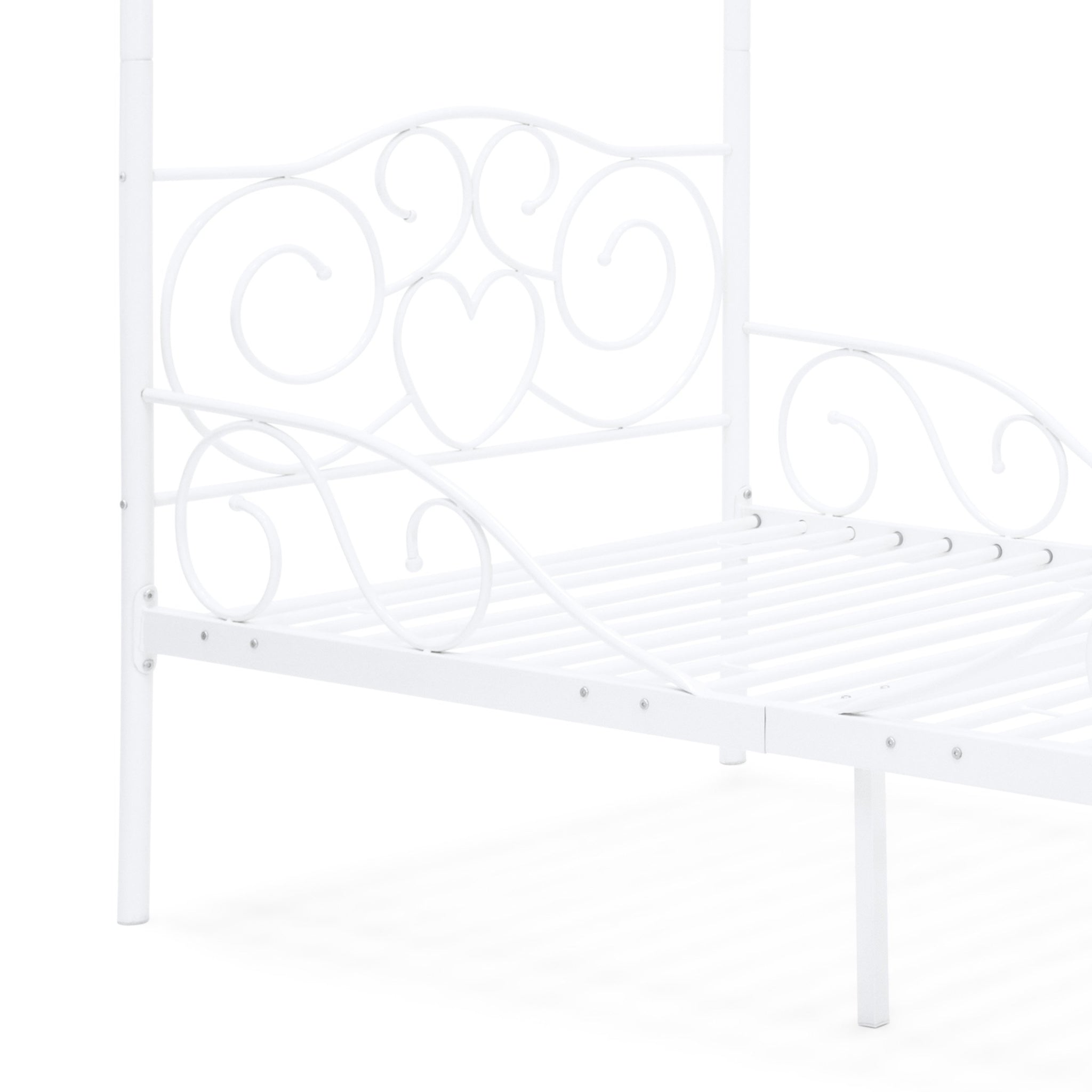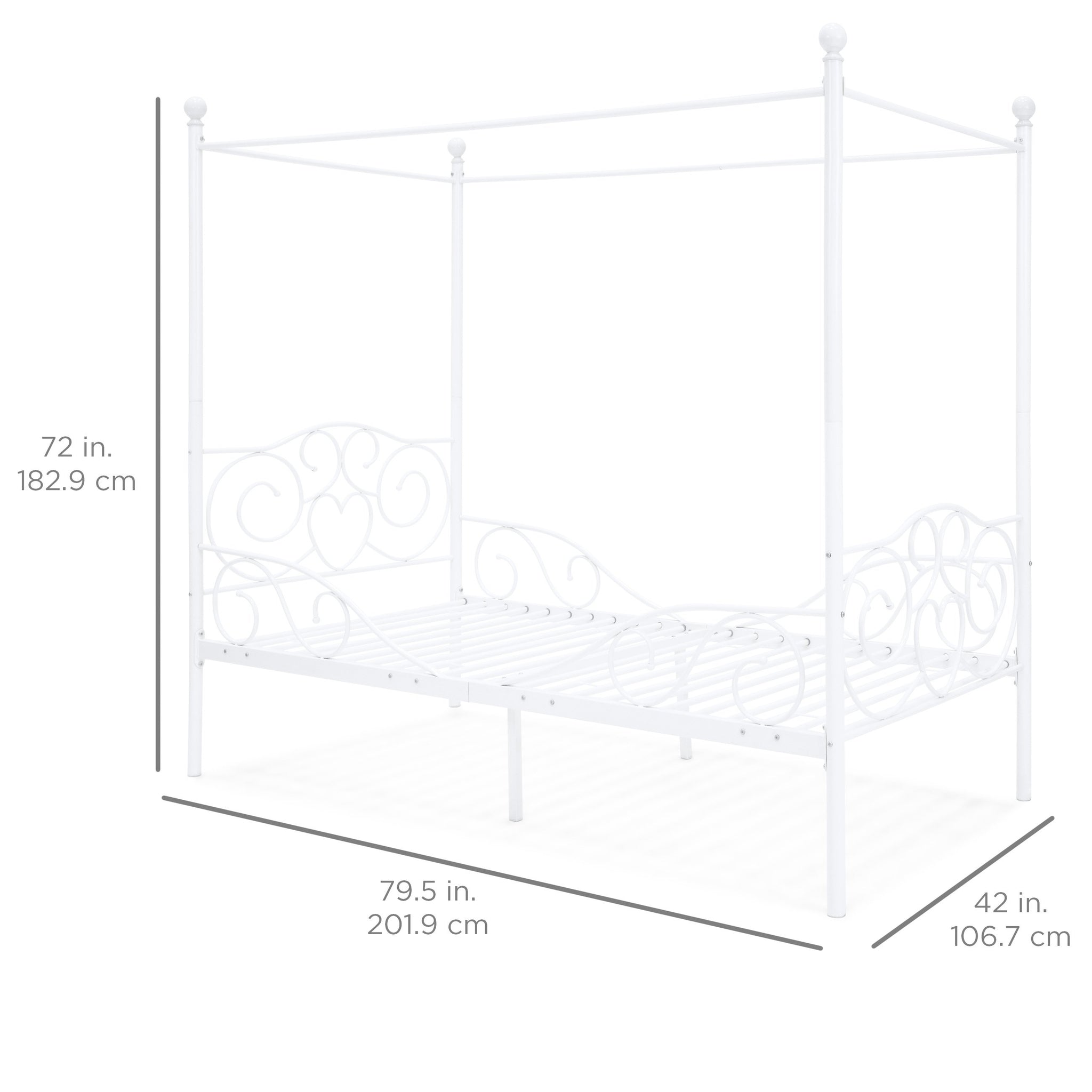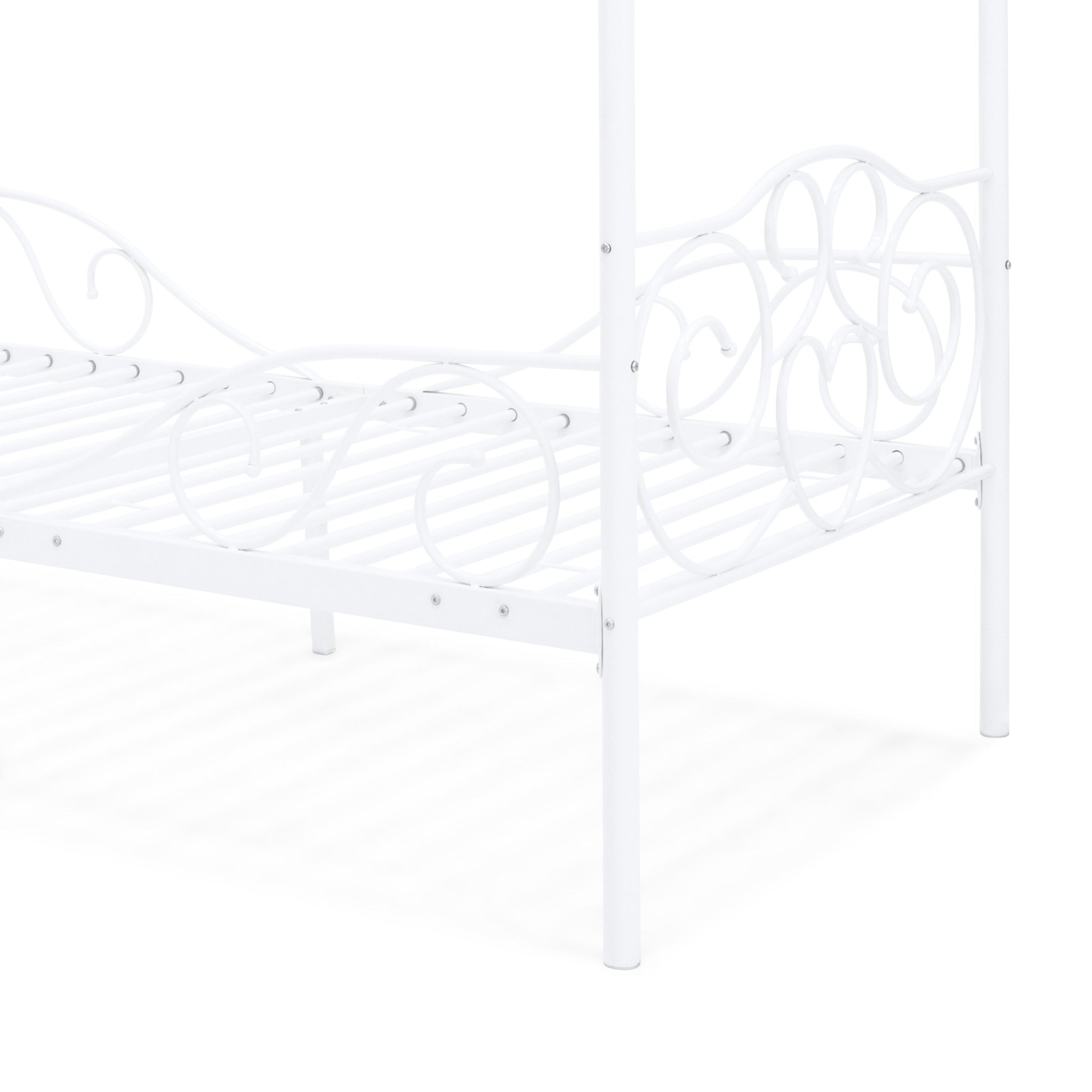 Classic 4-Post Metal Canopy Twin Bed Frame w/ Scroll Design