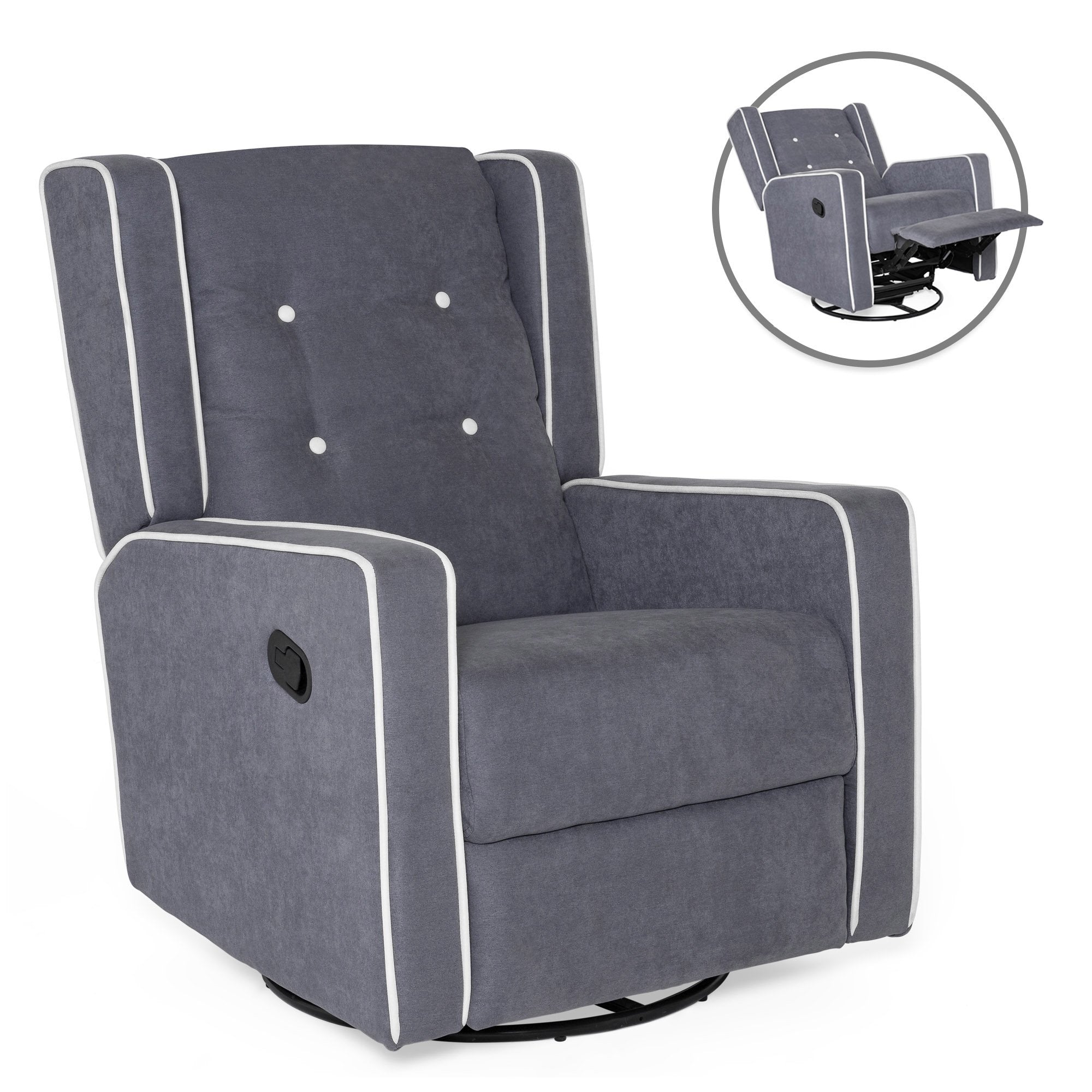 DUAL-FUNCTIONAL DESIGN: Easy-to-use side lever reclines this chair for a quick nap, and its rocking capability lets you relax or rock your little one to sleep