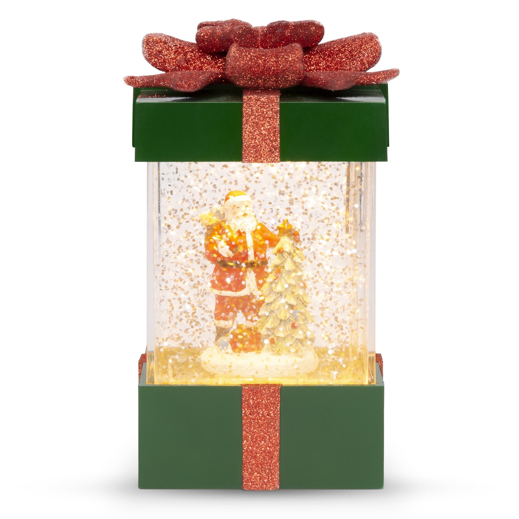 WRAPPED PRESENT DESIGN: Unique snowglobe comes in a festive Christmas present design with Santa inside