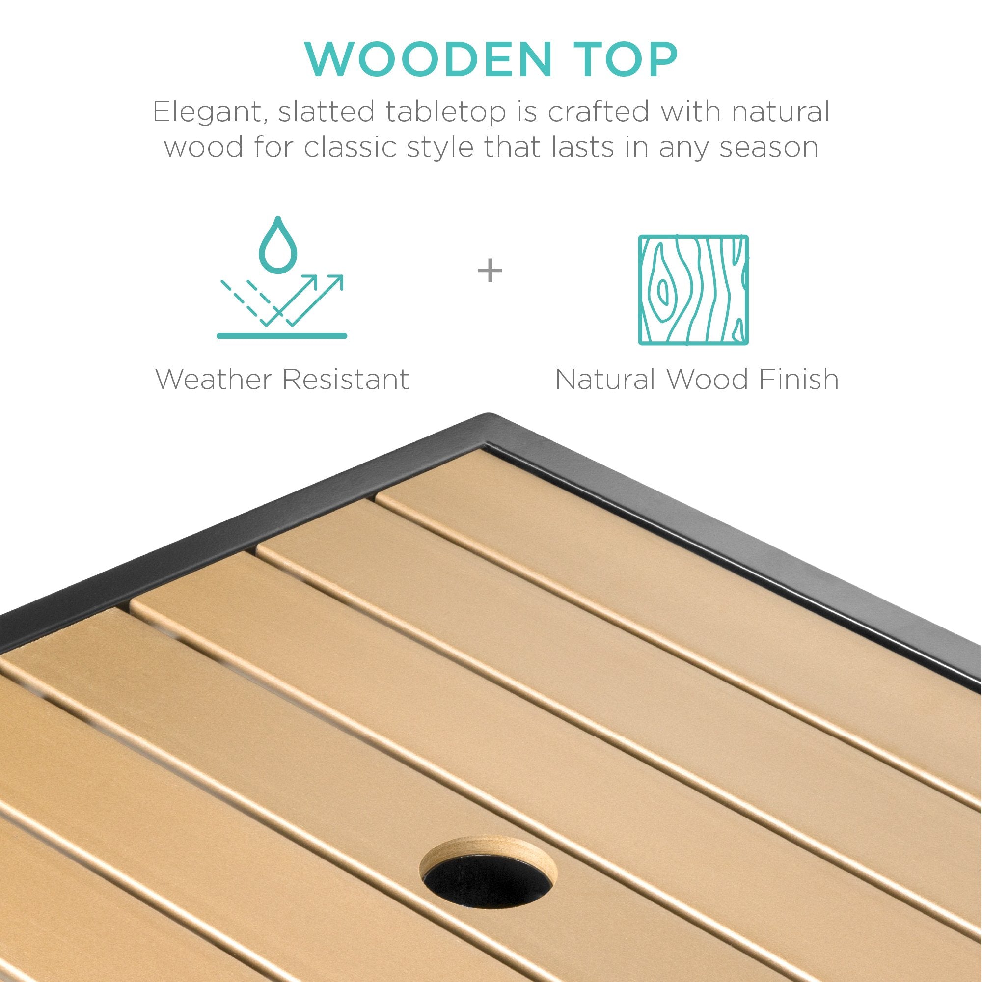 • STYLISH APPEARANCE: The natural finish on the wood top provides an attractive contrast against the dark brown wicker frame to create a stylish outdoor furniture piece