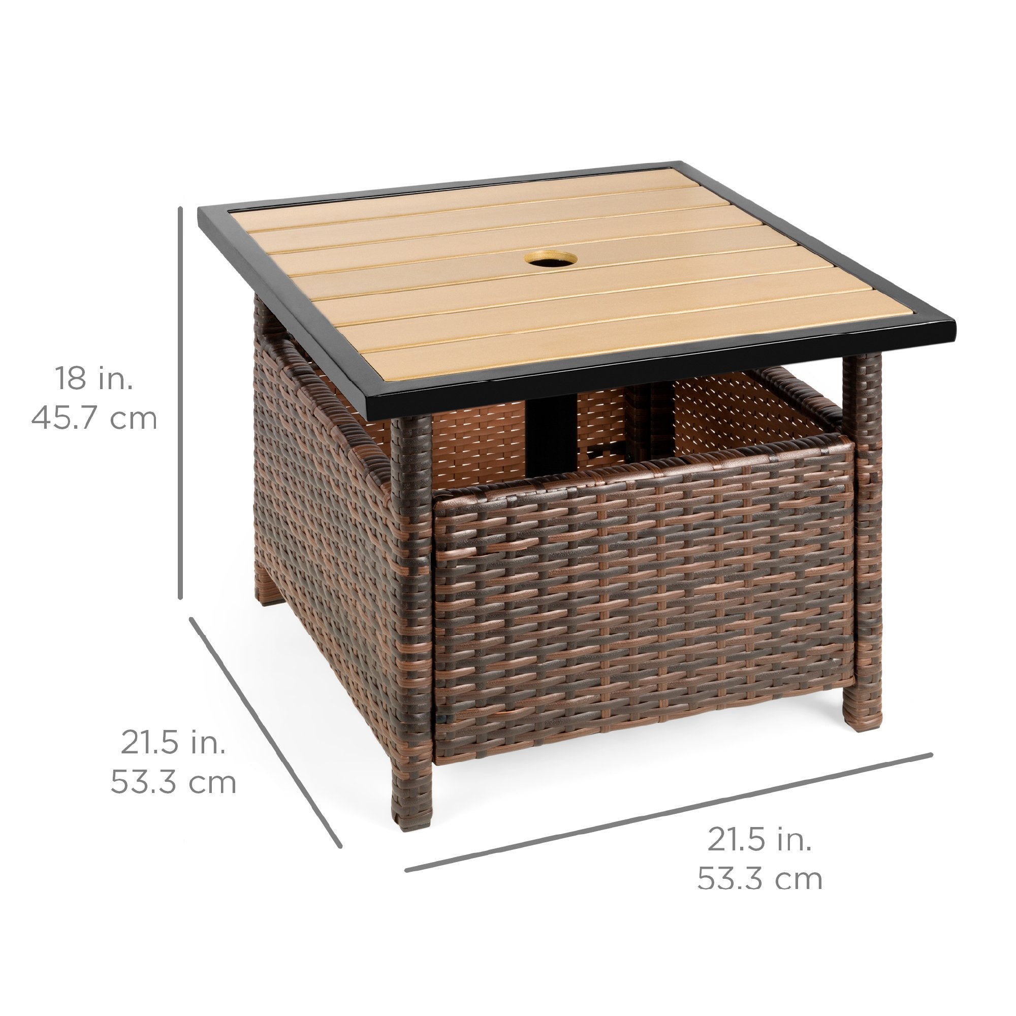 Outdoor Wicker Patio Side Table Accent Furniture w/ Umbrella Hole