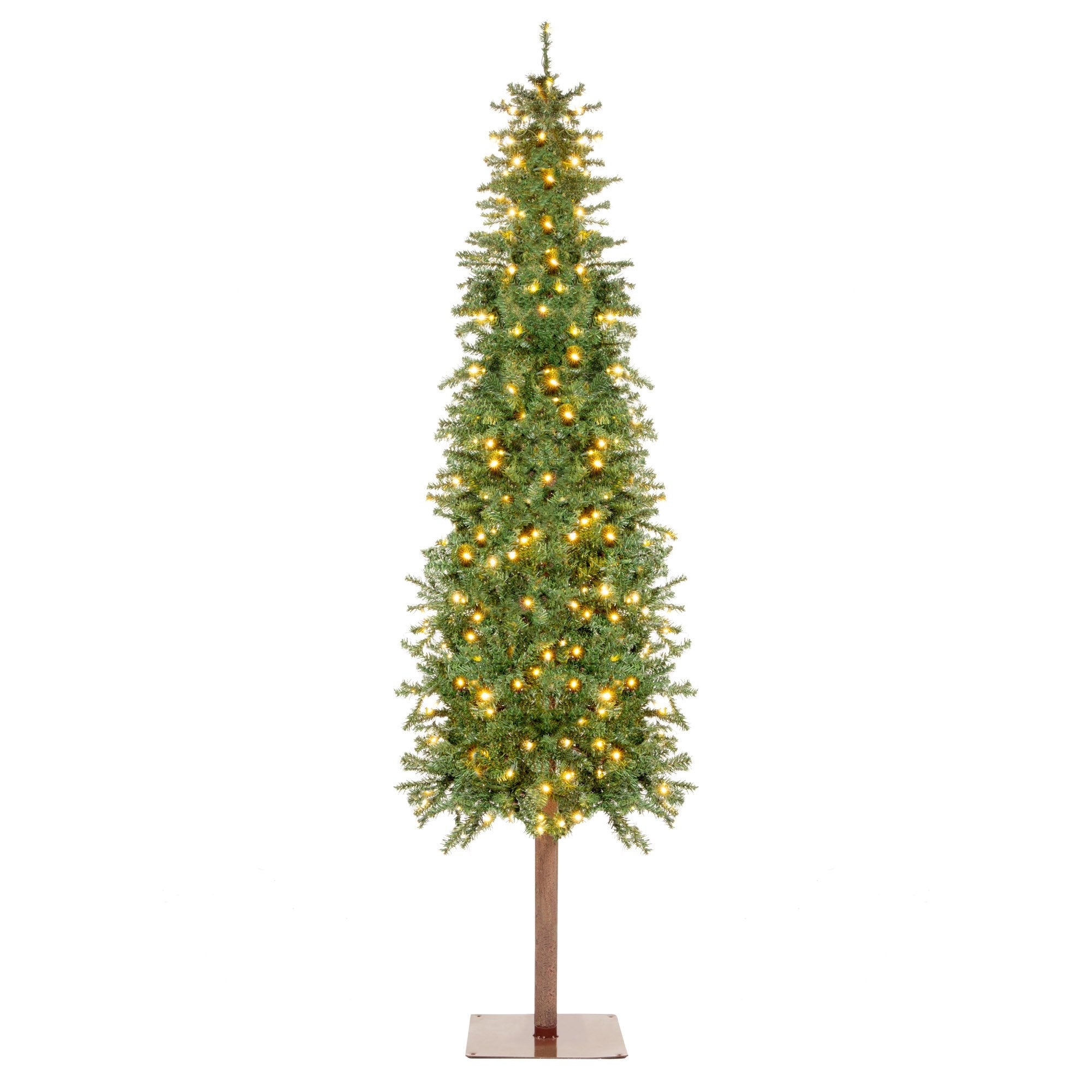 Pre-Lit Artificial Alpine Slim Pencil Christmas Tree w/ LED Lights, Stand