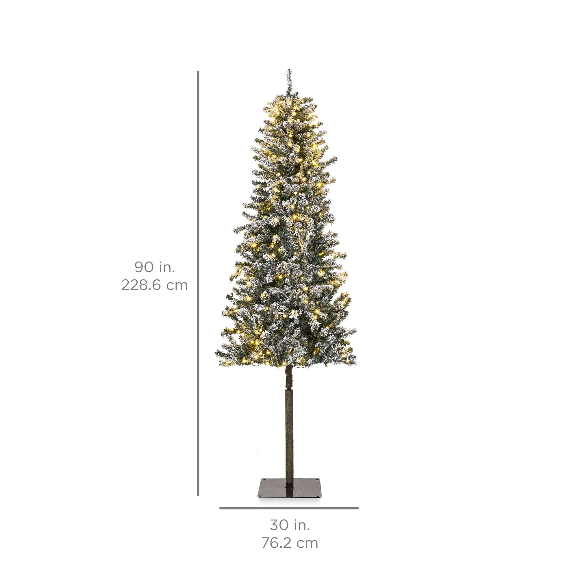 SNOW-FLOCKED ALPINE APPEARANCE: This accent tree features artificial bark from its metal base up the full-length of its trunk with a snow-flocked profile to lend a wintry aesthetic to any Christmas display