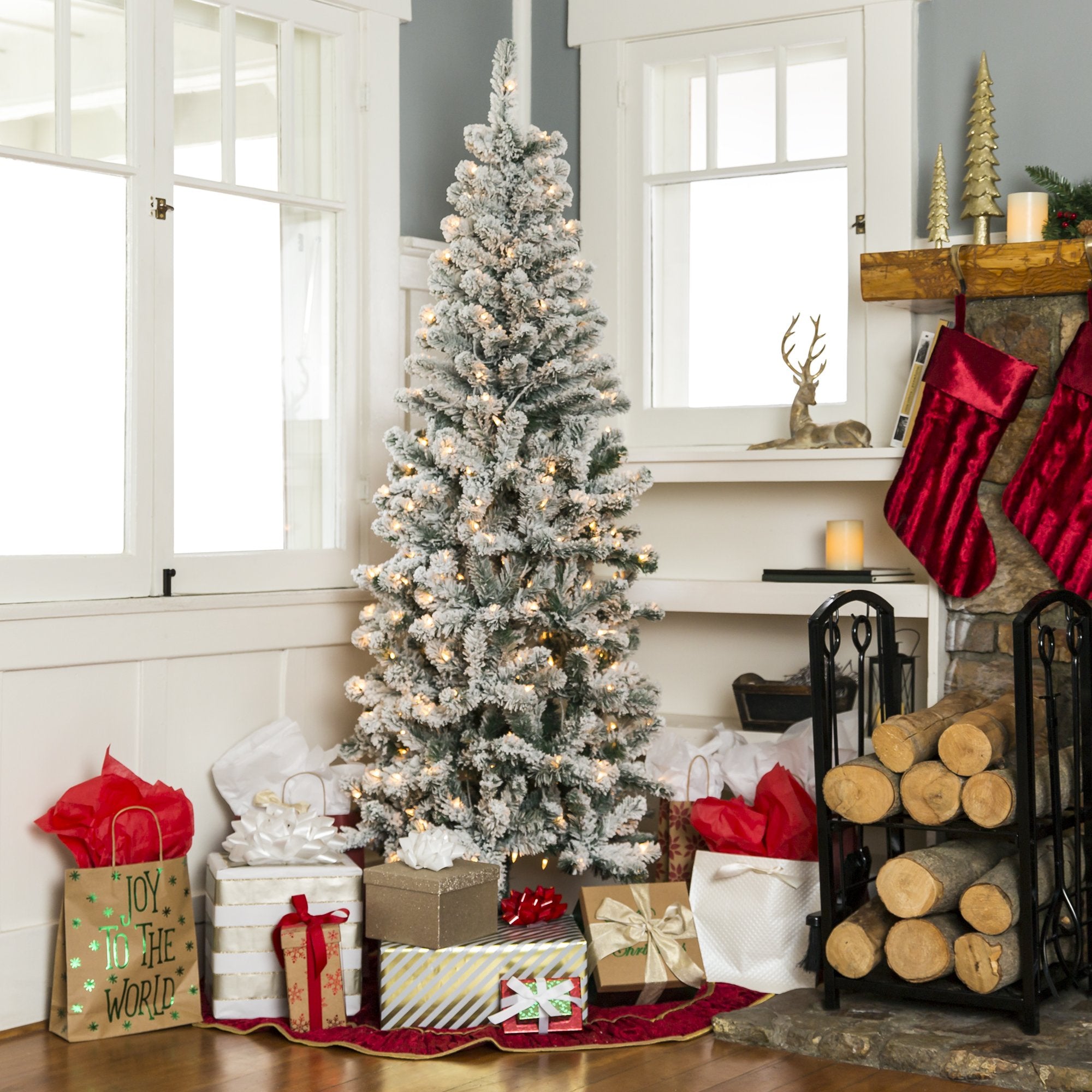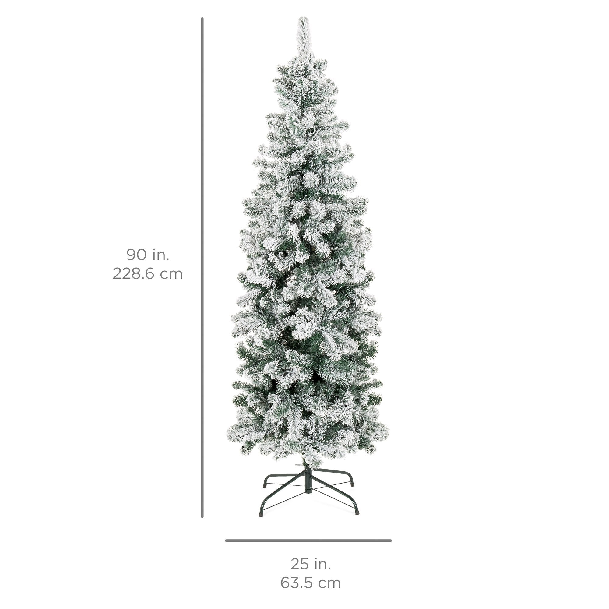 REALISTIC AND FESTIVE: The natural appearance of this pencil Christmas tree with flocked branches add a winter feel to any setting; Number of Tips (4.5ft/6ft/7.5ft): 300 / 502 / 641