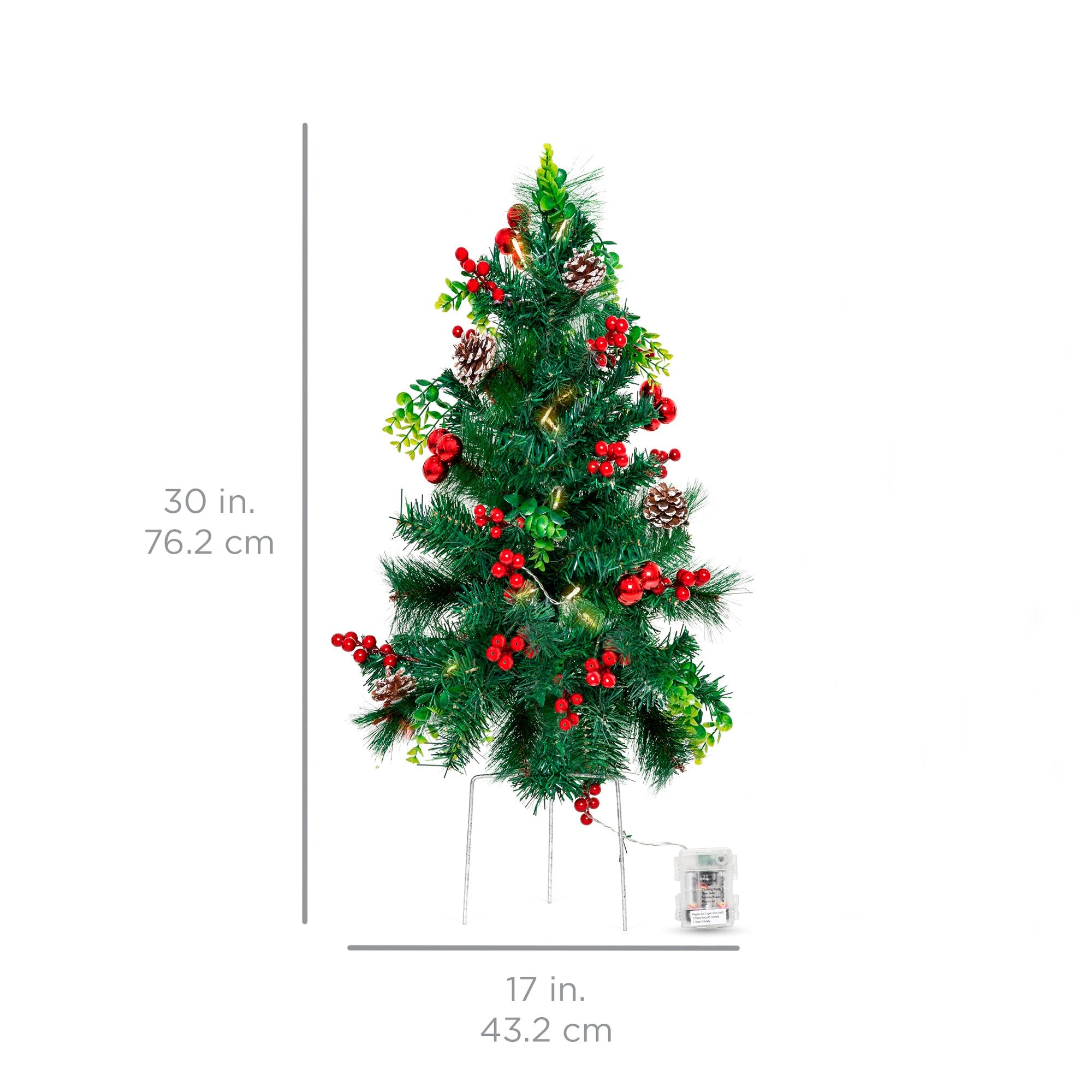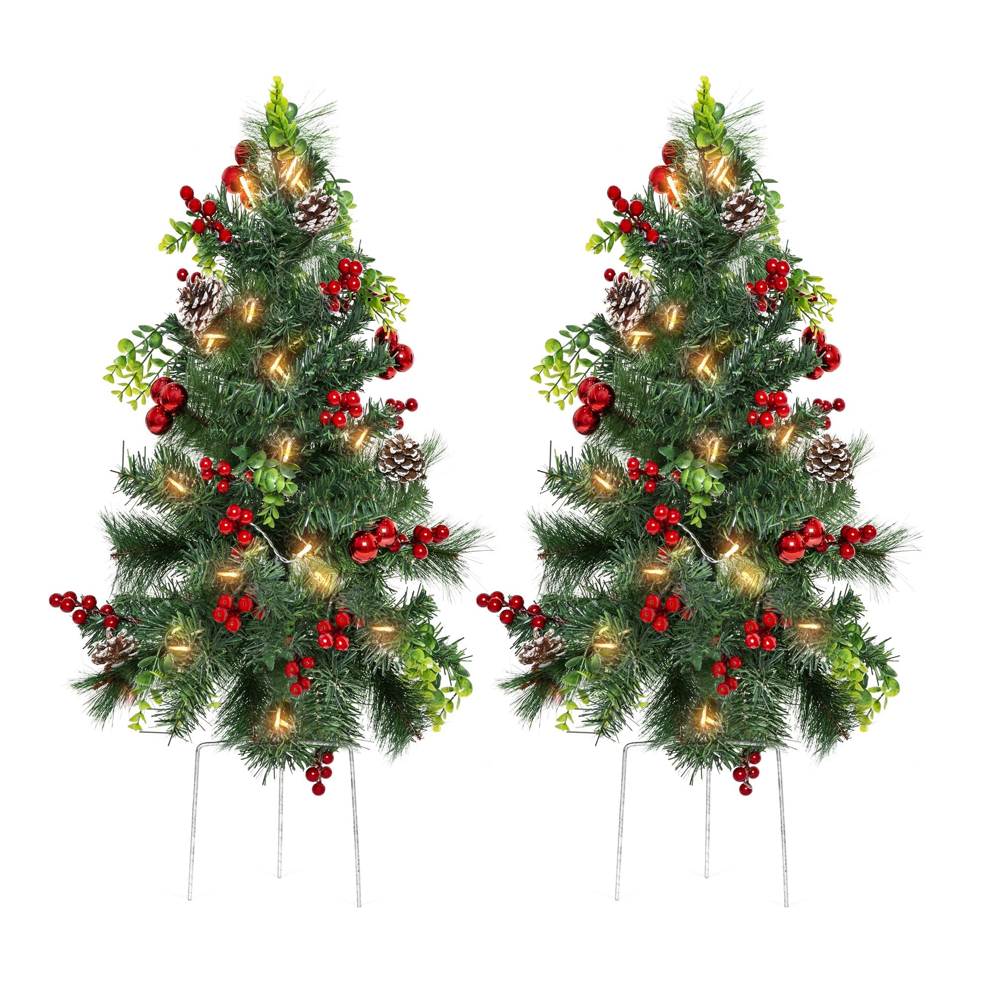 Set of 2 24.5in Pre-Lit Pathway Christmas Trees w/ Pine Cones, Ornaments