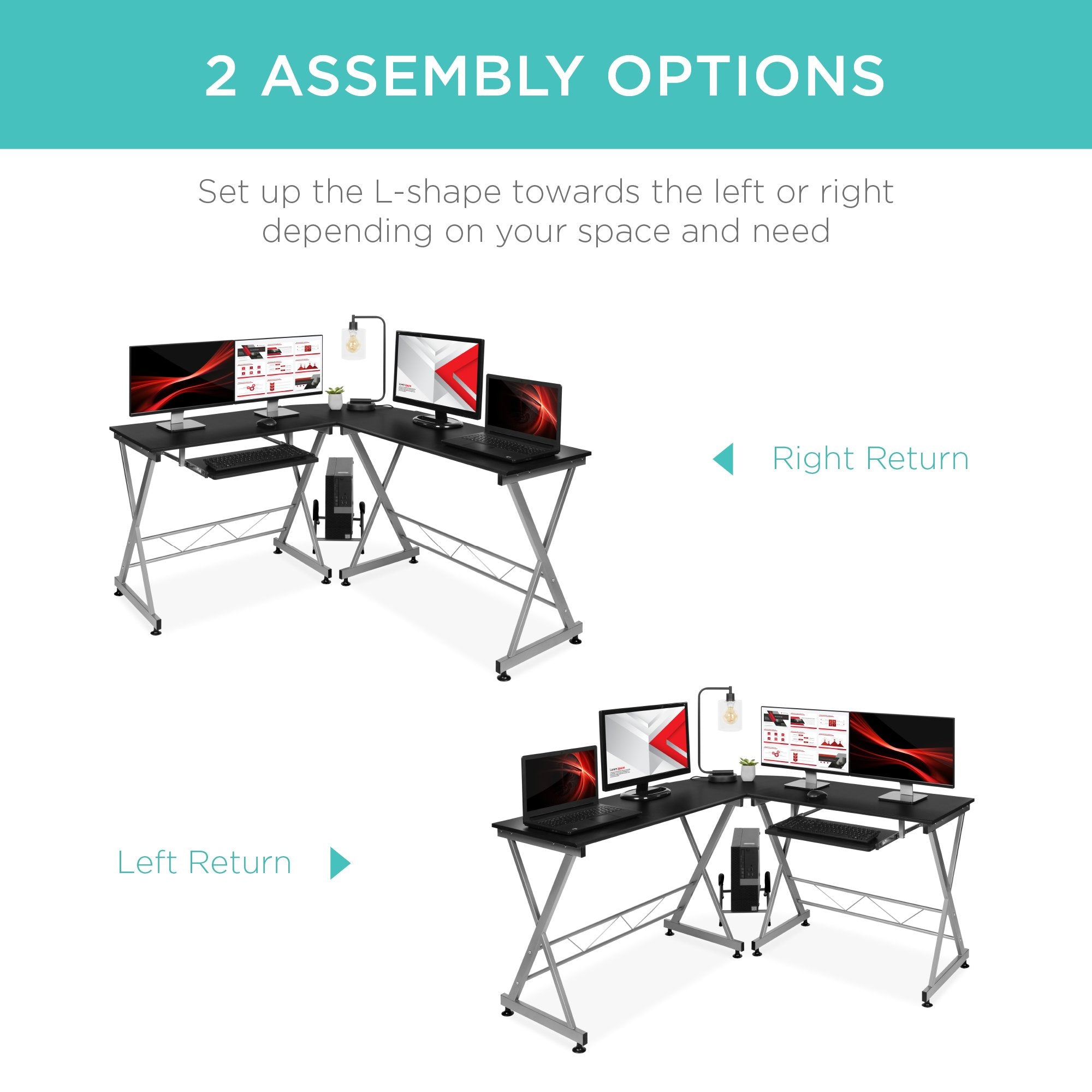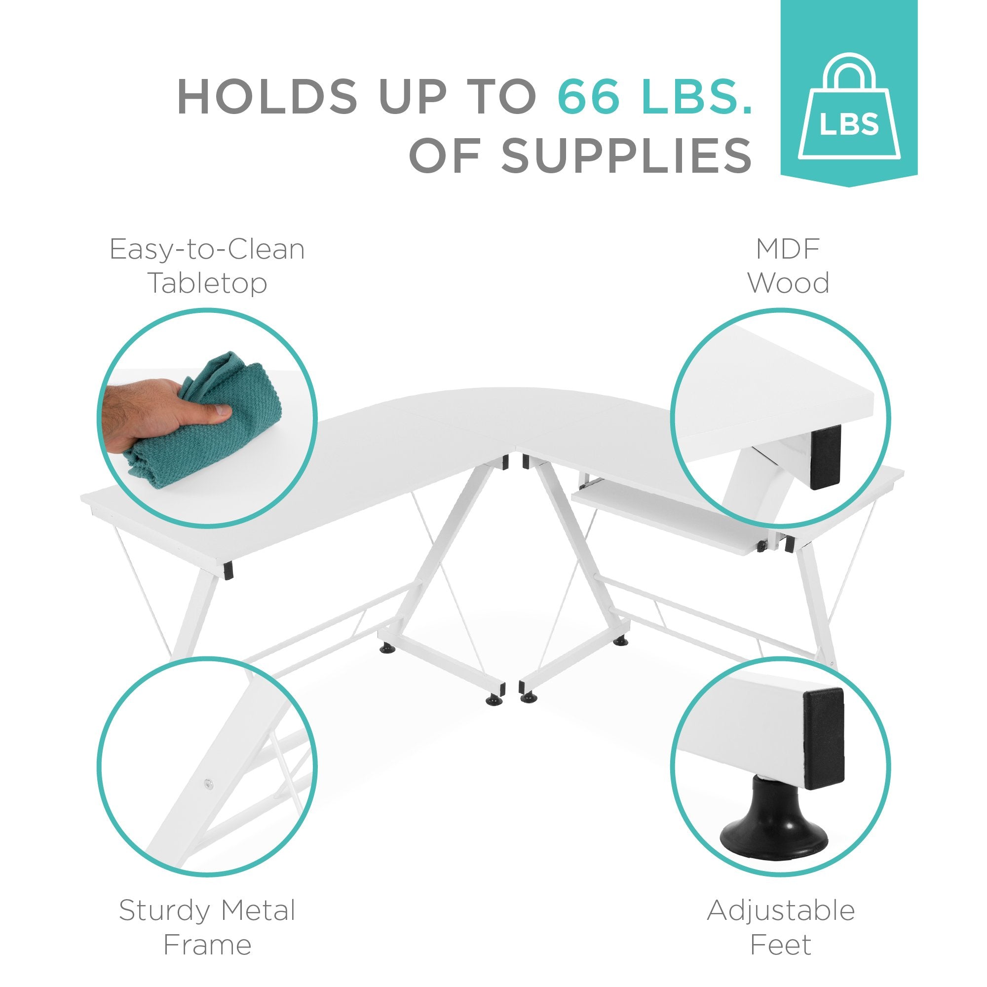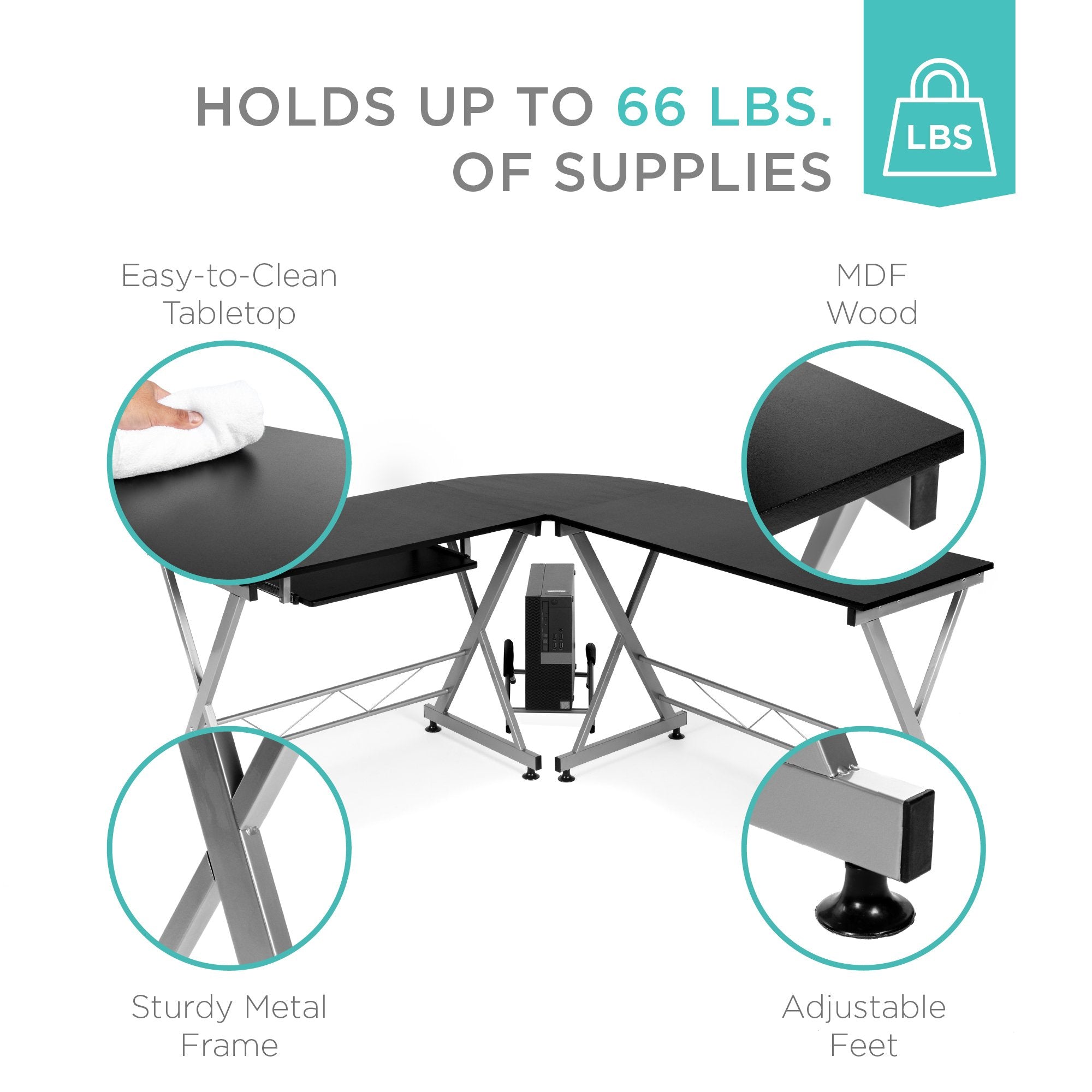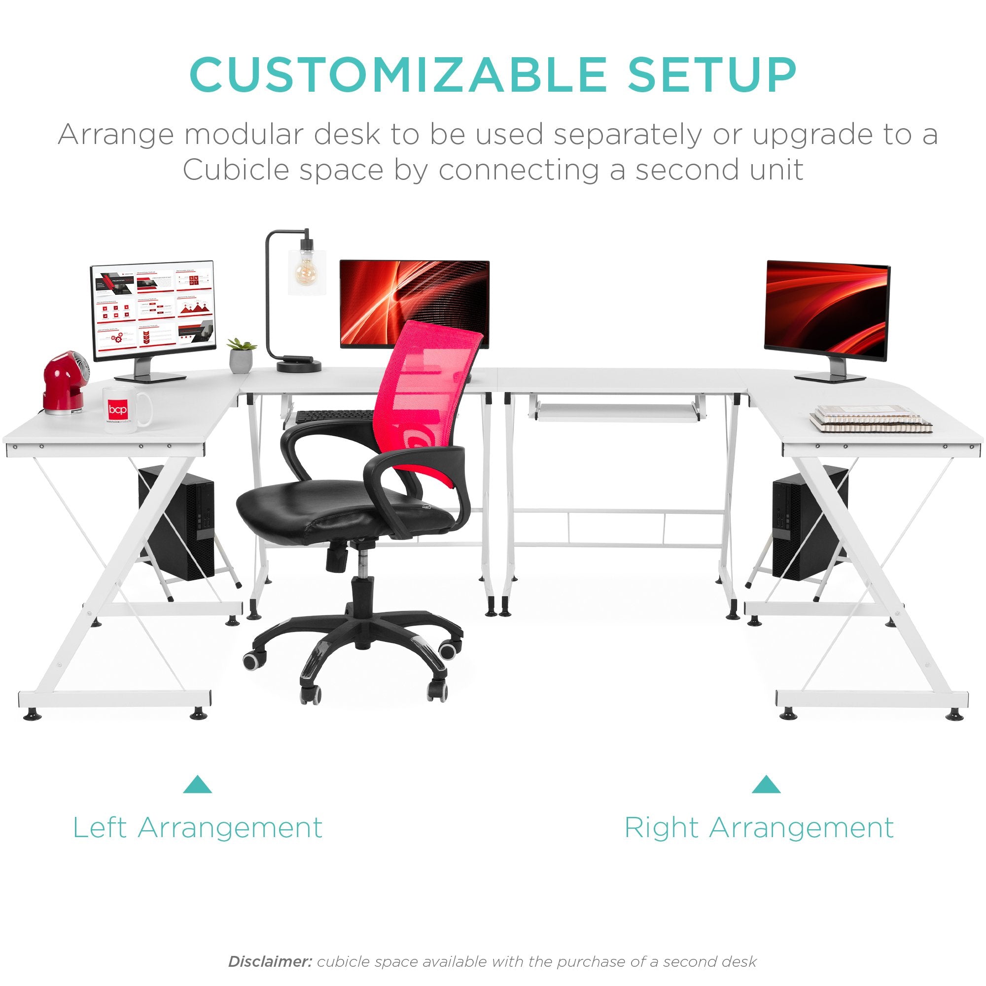 Modular L-Shape Corner Computer Desk w/ Wooden Tabletop, Keyboard Tray